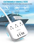 power strip Ultra Thin Flat Plug & 5 Ft Flat Extension Cord: The low profile flat wall plug is only 0.35 inches thick and has a 45-degree right angle design,making it easy to install behind furniture, allowing your furniture to fit close to the wall, and will not block the bottom receptacle of your duplex wall outlet. The 5 feet thin power cord is made of pure copper, with better current carrying capacity (15A). The flat extension cord can be easily hidden under the carpet. 7-in-1 Desktop Power Strip with USB Port: Flat extension cord could turn 1 socket into 3 outlets and 2 USB-A and 2 USB-C, allowing you to charge up to 7 devices at the same time. It's ideal for your tablet, cellphone, laptop, power bank or cameras, etc. Without a variety of converters, keep your desktop organized, and is a must-have accessory for colleague dorm rooms, offices, homes, kitchens, bedrooms, and more. USB C Fast Charging Station:With 2 USB C ports and 2 USB-A ports, this power strip can charge your devices up to 30% faster than other 15W power strips. The USB C port can charge up to 5V/3A, while the USB-A ports can charge up to 5V/2.4A Max. All USB Ports Output is 5V/4.5A, 22.5W max. Cruise Accessories Must Haves: This cruise power strip is a must-have home and cruise ship accessory, as cruise lines require that power strips do not have surge protection.Our travel power strip is compact and lightweight enough to fit in your luggage and backpack, making it easy to carry. Multiple Safety Certification & After-sales Service: FCC, RoHS, ETL certificates. This USB C power strip has overload protection, over-voltage protection, short-circuit protection, over-current protection, and overheating protection. Environmental protection and fire-resistant PC shell with flame retardant at 1382℉ make it a more durable and longer lifetime. worry-free 12-month warranty and friendly customer service.