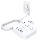 power strip Ultra Thin Flat Plug & 5 Ft Flat Extension Cord: The low profile flat wall plug is only 0.35 inches thick and has a 45-degree right angle design,making it easy to install behind furniture, allowing your furniture to fit close to the wall, and will not block the bottom receptacle of your duplex wall outlet. The 5 feet thin power cord is made of pure copper, with better current carrying capacity (15A). The flat extension cord can be easily hidden under the carpet. 7-in-1 Desktop Power Strip with USB Port: Flat extension cord could turn 1 socket into 3 outlets and 2 USB-A and 2 USB-C, allowing you to charge up to 7 devices at the same time. It's ideal for your tablet, cellphone, laptop, power bank or cameras, etc. Without a variety of converters, keep your desktop organized, and is a must-have accessory for colleague dorm rooms, offices, homes, kitchens, bedrooms, and more. USB C Fast Charging Station:With 2 USB C ports and 2 USB-A ports, this power strip can charge your devices up to 30% faster than other 15W power strips. The USB C port can charge up to 5V/3A, while the USB-A ports can charge up to 5V/2.4A Max. All USB Ports Output is 5V/4.5A, 22.5W max. Cruise Accessories Must Haves: This cruise power strip is a must-have home and cruise ship accessory, as cruise lines require that power strips do not have surge protection.Our travel power strip is compact and lightweight enough to fit in your luggage and backpack, making it easy to carry. Multiple Safety Certification & After-sales Service: FCC, RoHS, ETL certificates. This USB C power strip has overload protection, over-voltage protection, short-circuit protection, over-current protection, and overheating protection. Environmental protection and fire-resistant PC shell with flame retardant at 1382℉ make it a more durable and longer lifetime. worry-free 12-month warranty and friendly customer service.