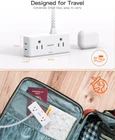Flat Extension Cord 6 feet, Plug Power Strip, 4 Widely 6FT, White Product Details Product Dimensions: 4.5 x 1.1 x 0.04 inches Item Weight: 8.8 ounces Item model number: BS104 Manufacturer: BESHON Brand: BESHON Color: White Total Power Outlets: 4 Voltage: 125 Volts Special Feature: Usb Slot 【Extension Cord 6 Feet & Ultra Thin Flat Plug】With only 0.35 inch ultra thin plug and 45°right angle design, the flat plug power strip is much thinner than traditional plugs, which can close to the wall easily, and hide in the back of furniture, bed or refrigerator. The 6ft extension cord is made of pure copper, with better current carrying capacity (15A). The braided power cord is not easy to deform, is durable, and more safer. 【7-in-1 Power Strip with USB Ports】Flat power strip could turn 1 socket into 4 AC outlets, 2 USB-C, and 1 USB-A, which could charge up to 7 devices at the same time. The USB C port can charge up to 5V/3A. USB-A ports can charge up to 5V/2.4A Max, all USB Ports Output is 5V/3.1A, compatible with your cellphone, laptop, tablet, earphone, or camera. 【 2.3 in Wide Spaced & Space-Saving】The extension cord with 2.3 inches widely spaced between outlets, larger than the standard socket, fits big adapters without blocking each other. The compact power strip saves more space, makes the table look neat, and is suitable for the home, office, and college dorm room. 【Cruise Accessories Must Haves 】The small cruise power strip with NO surge protection. The compact size (4.5*1.1*1.8 IN) takes up less space on your desk or luggage, a must have accessory for travel, dorm room, home, office, bedroom, kitchen, etc. 【Multi Safety Protection】RoHS, FCC, and ETL Certificates. This extension cord with multiple outlets has overload protection, short-circuit protection, over-current protection, over-voltage protection, and overheating protection.