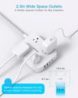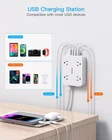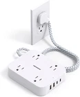 【Extension Cord with Multiple Outlets】 8 in 1 design, which can charge 8 devices at the same time. 4 AC outlets(15A/1875W Max) are separated without blocking each other. Suitable for most appliances like phones, laptops, hairdryers and more. A must have accessories for college dorm room, home, office, bedroom, kitchen and etc 【Flat Plug Power Strip】With 0.35 in ultra slim flat plug extension cord and 45° right angle design, the flat wall plug can close to the wall easily, and hide in the back of furniture, bed or nightstand, and will not block the bottom receptacle of your duplex wall outlet, can saves more space 【USB C Charging Station】Added extra 2 USB C ports for your devices, the USB C power strip can charge up to 5V/3A. USB-A ports can charge up to 5V/2.4A Max. The combination of 2 USB-C and 2 USB-A can be compatible with more usb devices 【Travel Essentials】This cruise ship power strip is definitely a must-have accessory for travel and cruise ships, as Cruise lines require that power strips DO NOT have Surge Protection. The travel power strip is compact and lightweight, easy to carry 【Multi Safety Protection】RoHS, ETL Certificates. This power strip has overload protection, short-circuit protection, over-current protection, over-voltage protection, and overheating protection. Environmental protection and fire-resistance PC shell with flame retardant at 1382℉ makes it more durable and longer Product Description Power Strip with 2 USB C Ports Smart Charging Technology It can auto-detects your connected devices and can reach faster charging efficiency. 3 USB ports total 3A/15W output, Each USB A port provide 5V/2.4A max. Note: The USB C port is not Quick Charger 3.0, doesn't support any other devices which need 9~22V charging voltage Cruise Accessories Must Haves Cruise lines require that power strips DO NOT have Surge Protection. Surge protected may cause safety risks. This cruise multi plug strip was made specifically to adhere to this rules so it’s meet the cruise compliant . It is the travel cruise accessories you must haves. Electrical Rating 1875W/125V/15A/60Hz USB-C Ports DC 5V/3A/15W MAX USB-A Ports 5V/2.4A/12W MAX USB OUTPUT DC 5V/3.1A/15.5W TOTAL Length of Cable 5FT Plug Type 45° Angled 0.35" Flat Plug Surge Protection No Surge Protection for Cruise Ship Item Dimensions 4.8*3.8*1 in 5 ft Ultra Thin Extension Cord 5 feet Braided flat cable is 0.12" thicker which thinner than the round power bar to run under the carpet and doesn't hurt when you step on that spot. Multi Safety Certificate Certified by ETL List, ROHs. High-quality components improving the safety of electricity. Superior Material Fire-resistance PC shell with flame retardance at 1382℉ makes it more durable and longer lifetime. Widely Spaced Outlets 2.3 inches widely spaced in between outlets, larger than the standard socket, fit big adapters without blocking each other Travel Essentials This compact power strip is small size and lightweight, you can take it to anywhere. The flat plug features a low profile fits easily in tight spaces. Overload Protection If the power load exceeds 13A/1625W (whether plugged into a single outlet or spread out over multiple outlets), the circuit breaker will trip. 45° Right Angle Flat Plug The 45-degree angled design doesn’t block the bottom receptacle of your duplex wall outlet Wall Mountable Design Additional 2 keyholes on back can allow you install this flat wall extension cord on wall, Save your spaces.
