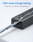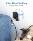 [Space-Saving Flat Plug]-With only a 0.33-inch ultra-thin plug, which is much slimmer than traditional plugs, so it's easier to access any wall socket and hide in the back of the sofa. And a 45° right-angle design will not block the bottom receptacle of your duplex wall outlet. No waste for every inch of space in your home. [Extremely Thin Extension Cord]-The 6-foot flat cable is 50% thinner than the traditional power cords to run it under a rug or along walls without adding unsightly bulk or creating a trip hazard. It can keep unsightly cords hidden and allows furniture placement without having to accommodate them. [Handles All Your Needs]-Equipped with 5 AC outlets and 3 USB (2 USB-C) ports, this 6 foot power strip turns 1 outlet into 8, allowing you to power 8 devices simultaneously to save more time. [Smart USB Charging]-With built-in USB slots, you don’t have to use a plug for a USB charger. And each port delivers optimized charging to smartphones, game consoles, and more (Max 3.4A/17W Shared). [Safeguard Your Devices]-This long outlet power strip has a 1700-Joule energy rating providing a reliable surge protector to protect any meeting room, office, a personal workstation, or entertainment center. [Mount It Anywhere]-Designed with 2 mounting holes, this slim power bar can be mounted to the wall anywhere you choose. It’s very convenient, exactly where you want it, and absolutely out of the way.