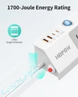 [Individual Switches]: This Type-C power outlet has 5 individual switches with indicator lights to cut off power to unused devices, saving you energy and money. Say goodbye to the hassle of plugging and unplugging. [For All Your Needs]: With 5 AC outlets and 4 USB (2 USB-C) ports, this long strip outlet turns 1 outlet into 9. The 5AC spacing is 2.17 inches wide, allowing you to power up to 9 devices at the same time, saving you even more time. AC outlets up to 1625W are compatible with laptops, PCs, printers, TVs, routers, desk lamps and more. The USB-C port with a maximum power of 20W is suitable for cell phones, watches and speakers.The USB-A port with a maximum power of 12W is suitable for fans, mobile power and more. [Space Saving Flat Plug]: At only 0.33 inches, the ultra-thin plug is much slimmer than traditional plugs, making it easier to plug into any wall outlet and hide behind the couch. 45° right angle design won't block the bottom socket of the duplex wall outlet. 45° right angle design won't block the bottom socket of the duplex wall outlet, so you won't waste any space in your home. [High-speed charging]: With a 20W PD port, this USB C power outlet can charge an iPhone 13 series to 50% in 25 minutes, up to 3 times faster than using the original 5W charger. [Protect Your Devices]: Rated at 1700 Joules, this long outlet is a reliable surge protector for conference rooms, offices, personal workstations or entertainment centers.