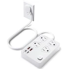 Features: 4 AC Outlets+1USB A +1 UAB C ports on Top Surface 5ft Power Cord Provides Sufficient Power Cord Length Fireproof enclosure. Durable flame retardant housing ensures safety in emergency situations. Package Includes 1 x Extension Lead Dimension 5 inch (diameter)×2 inch (height) 【90 degree right angle power strip】power strip has upgraded and optimized our products. It features a special design and an ultra-thin flat plug that can easily be plugged into sockets blocked by sofas. And will not block the insertion of other plug. Our design will save you space and keep your desk tidy, no more cluttered wires. 【Dual-Port Fast Charging】USB C power strip equipped with a 20W power delivery USB port and a 20W quick charge USB-C port, allows you fast charge iPhone and android at the same time. 【Portable Travel Power Strip】6Ft extension cord is in perfect size that fits right in the palm of your hand. Measuring just 5" x 2'',only weights 0.8lb. It easily fits in luggage, briefcase for your travel accessories or on your nightstand, home and office table desk to handle your Bluetooth speaker, laptops, smart , iPads without probolems. 【Surge Protector Power Strip】The 4 AC outlets with surge protection against electrical spikes. 3 level complementary surge protector circuit which composed of TVS, MOV (metal oxide varistor), GDT (gas discharge tube), with minimum 2000J energy absorbing capacity. Much more quickly and reliably than the traditional MOV surge protector circuit 【Wall Mountable Power Strip】Magicod surge protector power strip not only could be used in your office desk, room, it also can be wall mount. You can easily mount it on a wall, nightstand or desk, no more running messy tangled wires down to the floor outlet
