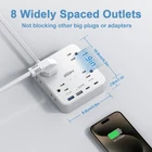 Flat Plug Power Strip(1700J), 48W USB C Power Strip, 12-in-1 Ultra Thin Power Strip with 8 AC, 2 USB A/2 USB C,5ft Extension Cord, Desk Charging Station,Home Office College Dorm Room Essentials Description and features Extension Cord with Multiple Outlets: 12 in 1 design, which can charge 12 devices simultaneously. 8 AC outlets(15A/1875W Max) with 1.9 inches long space in between, larger than the standard 1.5-inch socket. Larger spacing makes it easier to use for all kinds of equipment. Wide-range voltage design can be used on 120v to 240v circuits USB C Charging Station: Added an extra 4 USB ports for this versatile plugin, the right side USB C power strip can charge up to PD20W Max. The left USB A port can charge up to QC18W Max. The middle USB A/USB C features 15W max. It guarantees super-fast charging for iPads, iPhone, and tablets when using this power strip with high-speed USB ports.USB ports total 48w. No need to find adapters or plugs for your USB devices Flat Plug Power Strip: With 0.3 in ultra slim flat plug extension cord and 45° right angle design, the flat wall plug can close to the wall easily, hide in the back of furniture, bed, or nightstand, and will not block the bottom receptacle of your duplex wall outlet, can save more space. A 3mm thick 5ft extension cord is thinner than the round power bar and can be arranged easily in the corner to keep your space tidy Multi-Safety Protection: This power strip has overload protection, short-circuit protection, over-current protection, over-voltage protection, and overheating protection. The surge protector with overload protection protects your electrical appliances from lighting, surges, or spikes. The minimum energy-absorbing capacity of 1700 Joules. It will automatically cut power to protect connected devices when voltage surge is overwhelming Mountable and Cable Ties: The two mounting holes on the back allow this power strip to be securely installed onto the wall or furniture in various applications(including 3 screws). Reusable fastening cable ties can tie up the unused cord and make it better organized Return Policy ⦿ All our products come with a 30-Day Return Policy. If you would like to return your item and you are within 30 days of the purchase, and it is still in its original condition, you can return the item by contacting us through eBay messaging. ⦿ If you are not 100% satisfied, please let us know the Detailed Problem,We will give you a 100% satisfactory solution ⦿ If you received an incorrect, damaged, defective, or item not as described, contact us for a partial/full refund or replacement on our cost. ⦿ Free Shipping and Free Return 30-Days Money Back Guarantee. ☎ For all returned products, buyers MUST contact us for the returning address. Shipping ⦿ We do not ship to a different address. we will ship to the address you provide on the ebay only. Please check your address before purchase. ⦿ It should take 2-4 business days for the product to reach your destination. ⦿ If the product doesn't reach your destination within the time limit, please give it an additional 1-2 business days in case of postal delays and/or possible technical issues. ⦿ We use a selection of shipping services such as UPS, FedEx, USPS etc. ⦿ We ship only to the 48 contiguous states of America. We do not ship to Hawaii, Alaska, US Protectorates, APO/FPO addresses. Local pickups are not offered. ☎ If it takes any longer than that, please do not hesitate to contact us to resolve the issues. Contact us ☎ Please contact us via eBay message. And your message will be replied within 1 business days. For any queries, please feel free to contact us, we will get back to you as quickly as possible. Customer 100% satisfaction is our first priority and goal. We are always working hard for maintain high standards of excellence and resolve your problem in best way. So your POSITIVE FEEDBACK is very important. If you have any problem of the item, please feel free to let us know before leaving your feedback. We will try our best to solve your problem. About us We are here to give you quality products, competitive pricing and amazing service in order to make sure you get the best deal online, Thank you for your business and the opportunity to serve you.