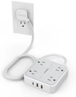 Flat Plug Surge Protector Power Strip, TESSAN 5 5 FT, Grey & Product Details Brand: TESSAN Color: Grey & Surge Protector Total Power Outlets: 4 Voltage: 125 Volts Special Feature: Flat Plug, Multi-USB, Mountable Flat Plug Power Strip: With only 0.31 in ultra thin flat head design, flat wall plug can easily fit in tight spots and hide behind sofa, bed, nightstand or other furniture, sitting flush against the wall; 45° right angle design create an extra space for other plug below without blocking 7 in 1 Desktop Power Strip: This flat extension cord is rated at 1250W; It can turn 1 socket into 4 AC outlets and 3 USB ports, can charge 7 devices simultaneously without blocking, keep your desktop organized; You can use it in any indoor place such as home, office and dorm room USB C Charging Station: Dual USB A ports features 2.4A, the USB C port features 3A; 2 types of USB ports can detect charged devices and deliver optimal charging speed, giving you more charging options; idea for USB devices like cell phone, tablet, earphone, etc Multiple Safety Protection: The power strips with surge protection can safeguards your expensive computers, tv, and all other electronices from from power surge attacks that might be caused by the unstable power supply, lighting and storm; Reliable overload switch will trip off automatically to protect your devices and home when power overloaded Mountable Power Strip: 2 mounting holes design allow this 5 ft extension cord securely installed in various applications, such as workbenches, wall mounts, floor mounts, under counters and more; 4 rubber feet at the bottom efficiently keeps it from slipping and sliding