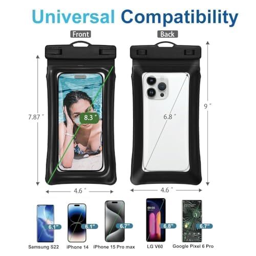 Return Policy Fast Delivery Trusted seller Floating Waterproof Cellphone Pouch, Large Waterproof Phone Dry Bag for iPhone 15 14 13 Pro Max Samsung LG Cellphone, IPX8 Cellphone Kayak Accessories, Beach Essentials, 1 Pack-Black-8.3″ Product Description IPX8 Certified & Superior Waterproof Protection: This phone holder is professionally certified as waterproof, providing excellent protection against water, snow, dust, and sand. It features dual plastic side locks that securely seal your cellphone Fit Cellphones up to 8.3 Inch & 15 mm Width Lanyard: suitable for cell phones up to 8.3 inches in size. And it comes with a lanyard that is 0.59 inches (15 mm). Good for beach games, rafting, snorkeling, swimming, water parks, showering Touchscreen Friendly & Ultra Clear Photo Underwater: The Beach Travel Essentials waterproof phone pouch utilizes high light transmittance transparent technology. It is also touch-friendly Four-sided Widened Airbags & Floating maximum load 280 g: With four-sided widened airbags for stronger buoyancy, the floating dry bag prevents your phone from sinking into the water. No longer worry about losing your phone and belongs Waterproof -Paper Towel Test: Prior to initial usage, please submerge the pouch with a dry paper inside underwater for 30 minutes. & Take out and Check it carefully Shipping Returns Payment Shipping Shipping is FREE to all addresses other than APO/PO boxes in the lower 48 states. All our stock ships from US-based warehouses. Shipped via USPS or UPS (depending on location and package weight) Unless stated otherwise, all orders will ship within 24-72 hours of your payment being processed. Check our feedback to see the great reviews of FAST shipping we offer. Returns Seller does not accept returns Payment We currently accept payment via eBay managed payments only. Once payment is cleared, we will dispatch your shipment within 1-3 business days. Please refer to the "Shipping" tab for more information regarding shipping speed to your destination.