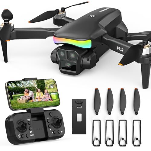 Return Policy Fast Delivery Trusted seller F417 Drone with Camera 1080P for Beginners and Adults,RGB LED Light 90°Electric Adjustable Lens,FPV Drone Mini RC Quadcopter with Live Video Camera,360° Flip,One Key Take Off/Land,Carry Case,Black Product Description Vibrant Colorful LED lights: F417 Mini drones equipped with RGB LEDs are perfect for nighttime flight. The enhanced version with seven-color switching and 10 lamp beads provide better visibility, making it the brightest drone with camera in the night sky HD CAMERA 90° Elect Adjustable: The F417 drone with camera 1080P HD captures stunning aerial footage. The elect adjustable 90° lens lets you customize the angle for the perfect shot, while the live video feed provides an immersive FPV flying experience Double time & Foldable design: F417 drone with camera, 3.7v 1600mah modular battery, the flight time is just like a GPS drone, extend flying fun, with USB charging cable, mini drone folding design plus the delivered carrying bag, easy to carry anyw Brushless motor and 2 cameras: Drone with 2 cameras can reach 7,000 RPM. The brushless motor is as powerful, durable and long-lasting as the GPS drone. The 360° roll brings a unique video angle. F417 drone allows you to experience a different flying fun F417 Beginner/Adult Drone: F417 Drone Designed for beginners and adults, the Mini Drone features easy-to-use controls, one-button takeoff/landing, and modular batteries for extended playtime. Friendly for beginner and adults Shipping Returns Payment Shipping Shipping is FREE to all addresses other than APO/PO boxes in the lower 48 states. All our stock ships from US-based warehouses. Shipped via USPS or UPS (depending on location and package weight) Unless stated otherwise, all orders will ship within 24-72 hours of your payment being processed. Check our feedback to see the great reviews of FAST shipping we offer. Returns Seller does not accept returns Payment We currently accept payment via eBay managed payments only. Once payment is cleared, we will dispatch your shipment within 1-3 business days. Please refer to the "Shipping" tab for more information regarding shipping speed to your destination.
