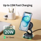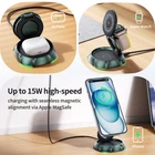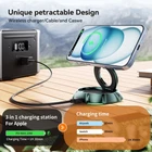 3 in 1 Wireless Charging Station:Charger for AirPods,iPhones,and iWatches simultaneously using advanced for charger technology.Compact and perfect for clutter-free workspaces and travel. Stand:This magnetic charging station securely anchors your smartphone with a robust magnetic grip,ensuring perfect alignment and efficient charging.Ideal for on-the-go professionals and tech enthusiasts seeking a reliable charging station. 15W Fast Charging with 30W Plug:Equipped with a 30W adapter,our wireless charger offers fast charging,Say goodbye to tangled wires and enjoy high-performance for charging. 360° Rotatable Base:The 360° rotatable base travel charging station makes sharing content or adjusting your viewing angle easy.This flexible apple charging station caters to your needs whether at the office,home,or outdoors. What You Get:Each package includes for wireless charging station,type-C cable,30W plug,user manual,and a one-year warranty.Our customer service team ensures a seamless charging experience.