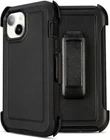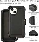 For iPhone 15 Pro,6.1 [Military Grade] Heavy Duty Double Layer Protection Shockproof with Belt Clip for iPhone 15 With Screen Protector (Black) MILITARY GRADE DROP TESTED - Our iPhone 15 case Protects your iPhone from all angles. SAFE SCREEN PROTECTION - Extra raised lips and corners of the front hard frame provide super protection from drops, keep your screen safe. Multi Layer PROTECTION - Inner Layer design: a poly carbonate shell / Outer Layer design: Durable silicone skin cover.
