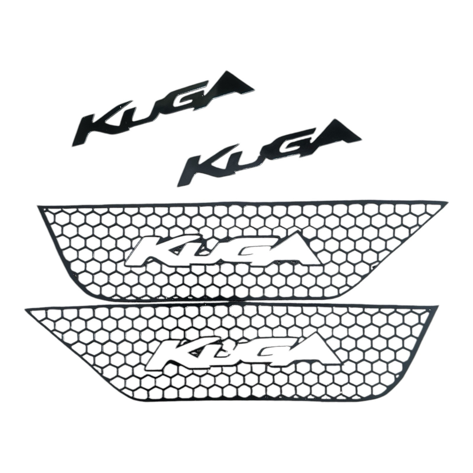 FORD KUGA MK2 & MK3 FOG LIGHT GUARDS RJH EXCLUSIVE NEW TO MARKET Black gloss honey comb Available with KUGA logo or all honeycomb Perfect fit 3M backing Please make sure you have the correct fog lights as models may vary 🚨PLEASE CHOOSE IF YOU REQUIRE THE KUGA CUT OUT OF THE HONEYCOMB🚨