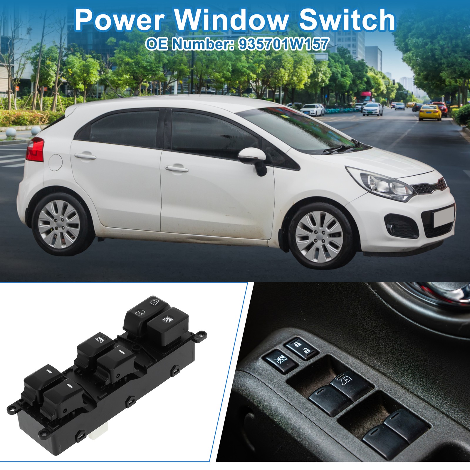 Document Fit for:for Kia Rio 2012-2017OE Number:935701W157Product Highlights:Made of plastic, and metal, durable for your car.It has a good fit, and would not break or crack easily during use.After 50,000 tests, the product has no corrosion or rust, the switch performance is good, the buttons are smooth and there is no sticking.There is no obvious fading when it touches water, the keys do not affect the use, and the identification symbols are not damaged.The appearance of the product is not damaged after falling.This is a non-OEM product, accessory only!Product Information:Number of Pins: 18Placement on Vehicle: Front Left Driver SideButton Function: Door Lock/Unlock, Window Lock/Unlock, Window Control, Auto Window ControlColor: BlackMade of:Material: Plastic, MetalHow to use:Use a skateboard to carefully pry the old switch out.Pull the plug from the old switch.Connect the new switch to the wiring harness.Finally, install it on the window switch bezel bracket.Content:Package Includes 1 Pc Power Window SwitchTip:Please make sure that the OE number you need with our consistent before you order it.Make sure this is the correct application type of power window switch before placing an order.If the pins do not match, this window switch will not fit your vehicle.Please pay attention to the mating plug before installing the switch, and clean the excess dust. Front Left Driver Side Power Window Switch for Kia Rio 2012-2017 935701W157 Fit for : for Kia Rio 2012-2017 OE Number: 935701W157 Product Highlights : Made of plastic, and metal, durable for your car. It has a good fit, and would not break or crack easily during use. After 50,000 tests, the product has no corrosion or rust, the switch performance is good, the buttons are smooth and there is no sticking. There is no obvious fading when it touches water, the keys do not affect the use, and the identification symbols are not damaged. The appearance of the product is not damaged after falling. This is a non-OEM product, accessory only! Product Information : Number of Pins: 18 Placement on Vehicle: Front Left Driver Side Button Function: Door Lock/Unlock, Window Lock/Unlock, Window Control, Auto Window Control Color: Black Made of : Material: Plastic, Metal How to use : Use a skateboard to carefully pry the old switch out. Pull the plug from the old switch. Connect the new switch to the wiring harness. Finally, install it on the window switch bezel bracket. Content : Package Includes 1 Pc Power Window Switch Tip : Please make sure that the OE number you need with our consistent before you order it. Make sure this is the correct application type of power window switch before placing an order. If the pins do not match, this window switch will not fit your vehicle. Please pay attention to the mating plug before installing the switch, and clean the excess dust. ITEM SPECIFICS Product Name Power Window Switch Net Weight 170g Shell Color Black Manufacturer Part Number 935701W157 Brand Switchpart Placement on Vehicle Door Material Plastic,Metal Package Content 1 Pc Car Power Window Switch Note This is not oem product,accessory only. NOTICE If you have any questions, please feel free to contact our customer service. Our response will be faster than eBay! Our Handling Time: within 24 hours on weekdays eBay Handling Time: 72 hours ABOUT US SHIPPING POLICY PAYMENT RETURN CONTACT US We are committed to providing professional, safe and effective personal care products. We strive to provide customers loved products at the competitive price. We work with suppliers to discover practical, easy-to-use personal care products. Our store not only offers quality products at the competitive price, but also has professional customer service, offers you comfortable shopping experience. Please don't forget to follow us on eBay. We will continue to update and provide more and more practical personal care products. switchpart thank you for your business! We work hard to safely and securely ship your order in the least amount of time. Storewide free shipping in United States. All our items will be shipped to buyer's address, please confirm your address on eBay before you purchase. Taxes and other charges are included in the item price or shipping charges. Buyers are responsible for these charges. We accept payment methods show in payment details. Payment must be received within 7 days of auction closing. According to eBay guidelines, all unpaid purchases case will be opened automatically. If you need to specify the color or other information for the items you purchased, please Click here to contact us directly with item # and your eBay ID. We offer a 30 day return policy. This is under the following conditions: The item must be unused and in a resalable condition otherwise are not eligible for a refund. All items returned by post are returned at your expense, we cannot be held responsible for this. Please use a traceable service. Generally we answer emails within 24 hours (excluding weekends & holidays). Questions or comments? We welcome your inquiry! Please feel free to contact us directly. Description Policy Front Left Driver Side Power Window Switch for Kia Rio 2012-2017 935701W157 Fit for : for Kia Rio 2012-2017 OE Number: 935701W157 Product Highlights : Made of plastic, and metal, durable for your car. It has a good fit, and would not break or crack easily during use. After 50,000 tests, the product has no corrosion or rust, the switch performance is good, the buttons are smooth and there is no sticking. There is no obvious fading when it touches water, the keys do not affect the use, and the identification symbols are not damaged. The appearance of the product is not damaged after falling. This is a non-OEM product, accessory only! Product Information : Number of Pins: 18 Placement on Vehicle: Front Left Driver Side Button Function: Door Lock/Unlock, Window Lock/Unlock, Window Control, Auto Window Control Color: Black Made of : Material: Plastic, Metal How to use : Us