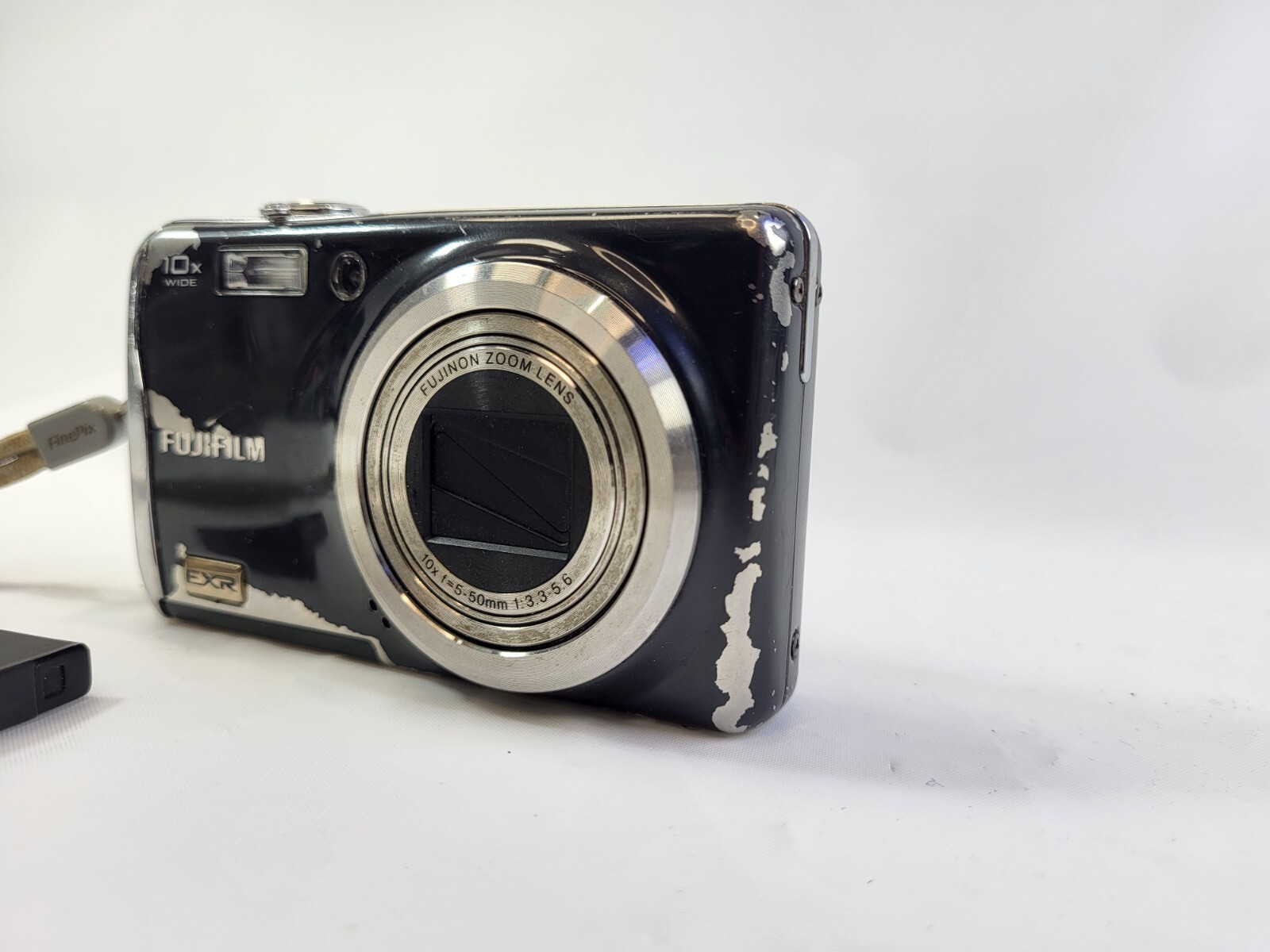 Fuji Finepix F80 EXR Digital Compact Camera Black Silver TESTED Unit is in great condition. Some external cosmetic usage wear. Tested and works, but battery is at a low charge and I dont have a charger for it. Please see photos!