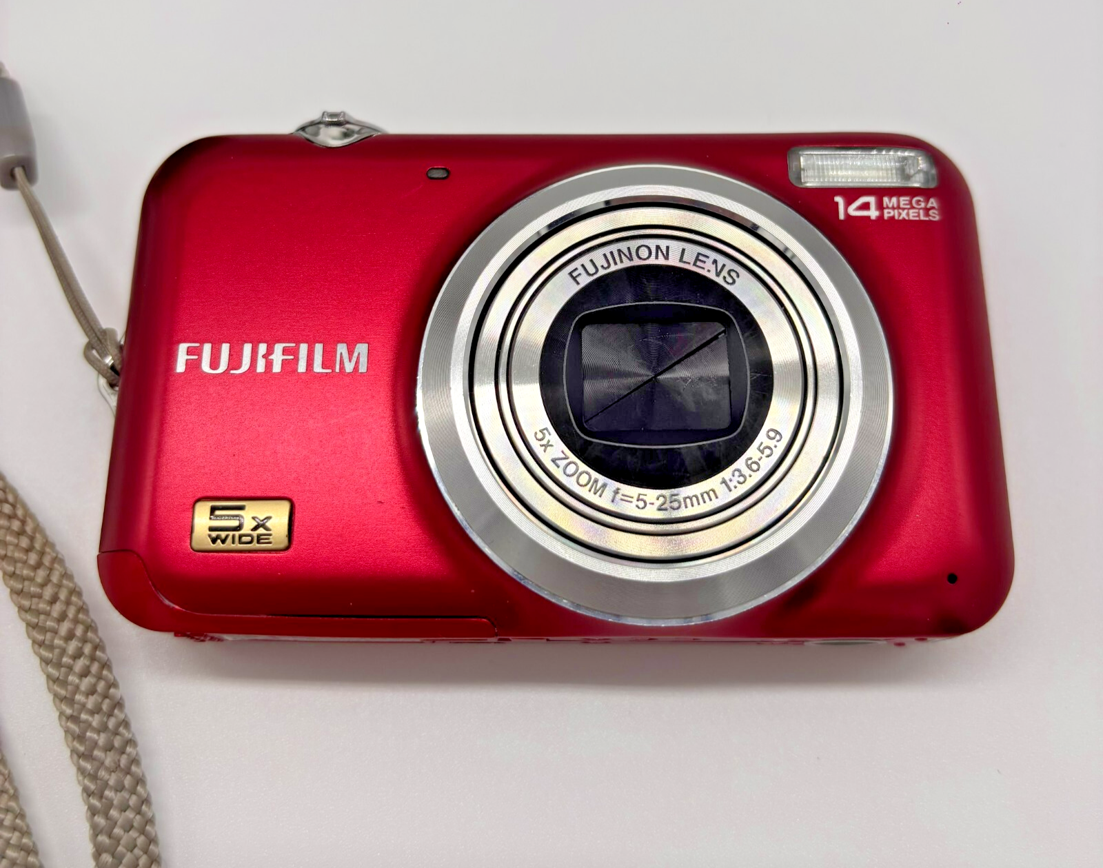 Add brilliance to your photography with this vibrant red Fujifilm FinePix JX260 , featuring a 14 MP sensor and 5× Fujinon optical zoom . This fully functional, compact camera comes with all original Fujifilm accessories: charger, battery, black case, and wrist strap. Highlights: Sharp images and HD video via the 14 MP sensor Classic Fujinon lens perfect for travel and everyday shots Compact, stylish, and travel-ready Condition Details: The camera has been carefully protected—no scratches, chips, or cracks. The only issue: after powering off, the lens occasionally gets stuck slightly, but fully opens and performs perfectly (see video/photos). Selling AS-IS at this fair price due to that minor quirk. ✅ 14-Day Returns With all original items and in the same condition as sold. Please note lens issue mentioned above.