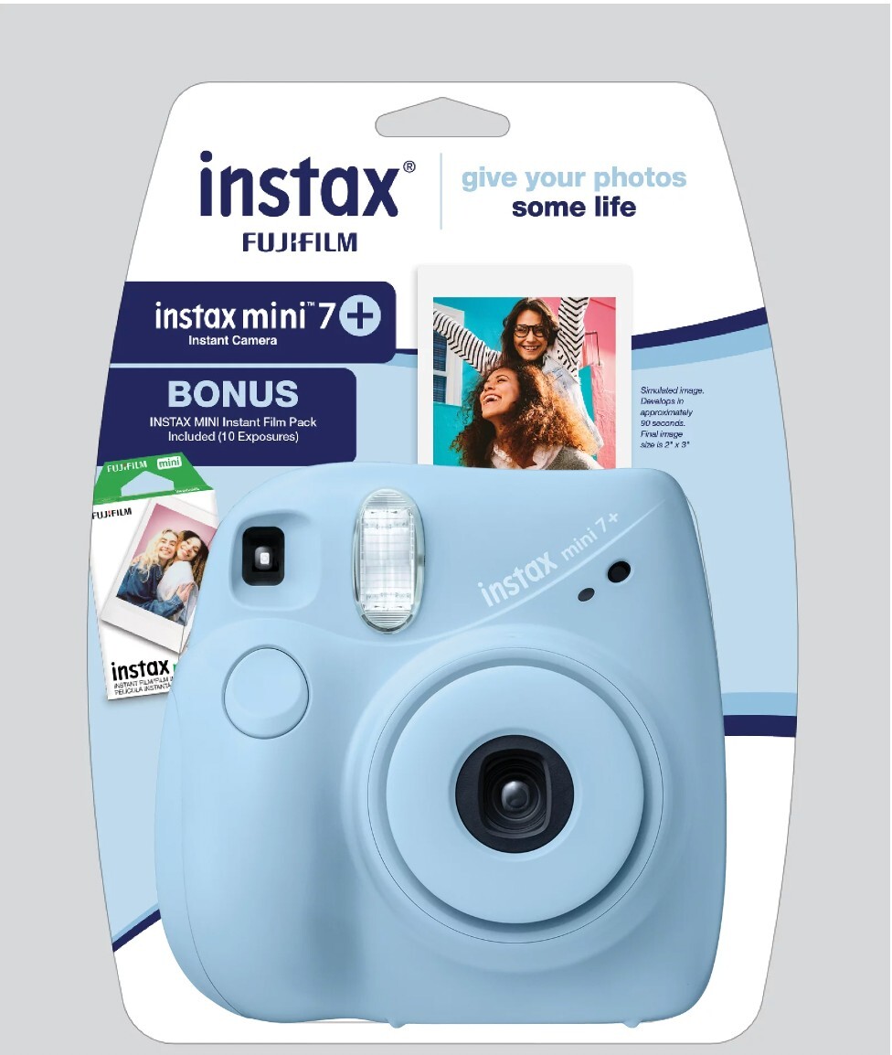 Fujifilm Instax Mini 7+ Instant Camera - Light Blue(10-pack Mini Film inculded).