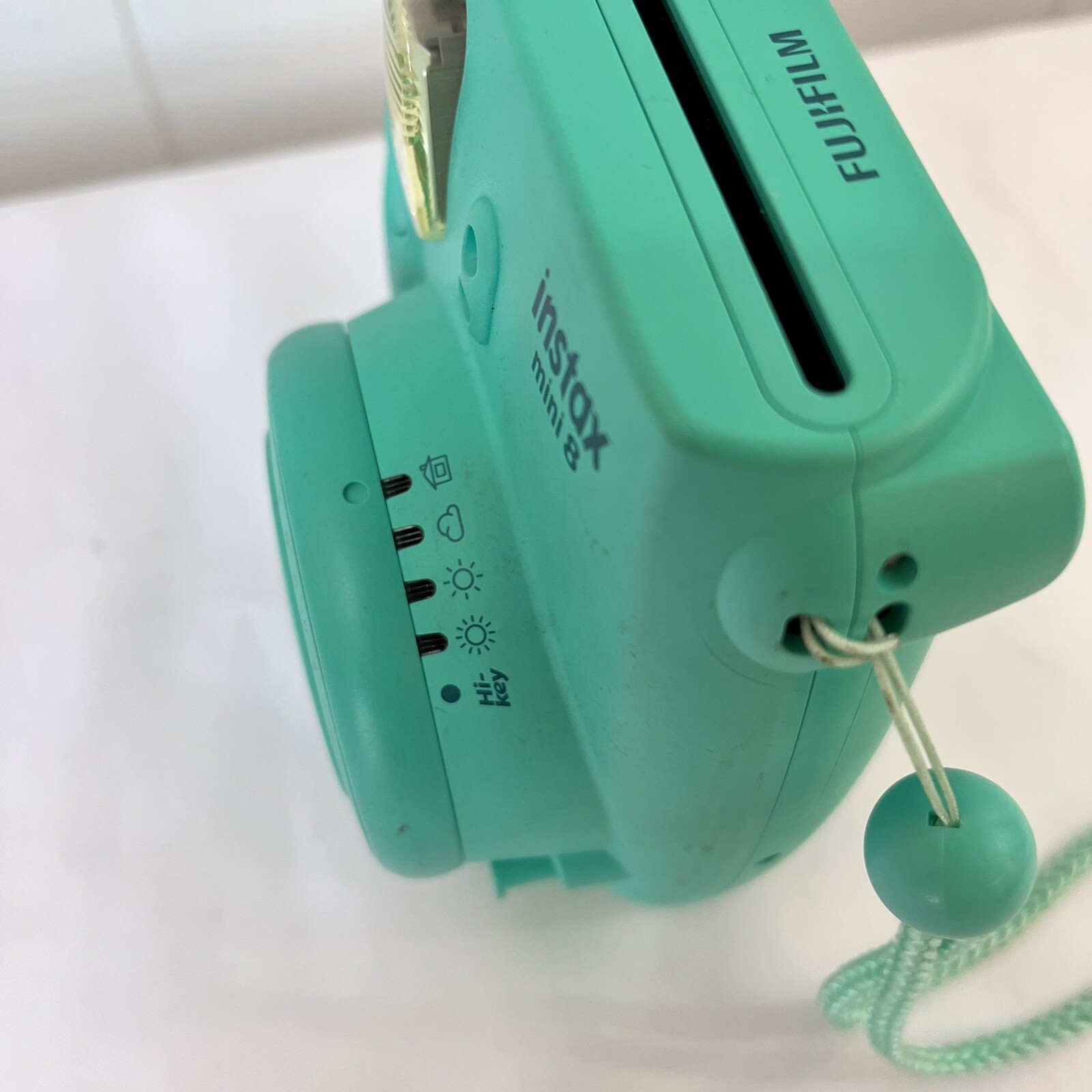 Fugifilm Instax Mini 8 Instant Camera Turquoise Green Tested Working Minor scuffs may be present from handling and storage. Includes 10 pieces of film. Batteries not included. Requires 2 AA batteries.
