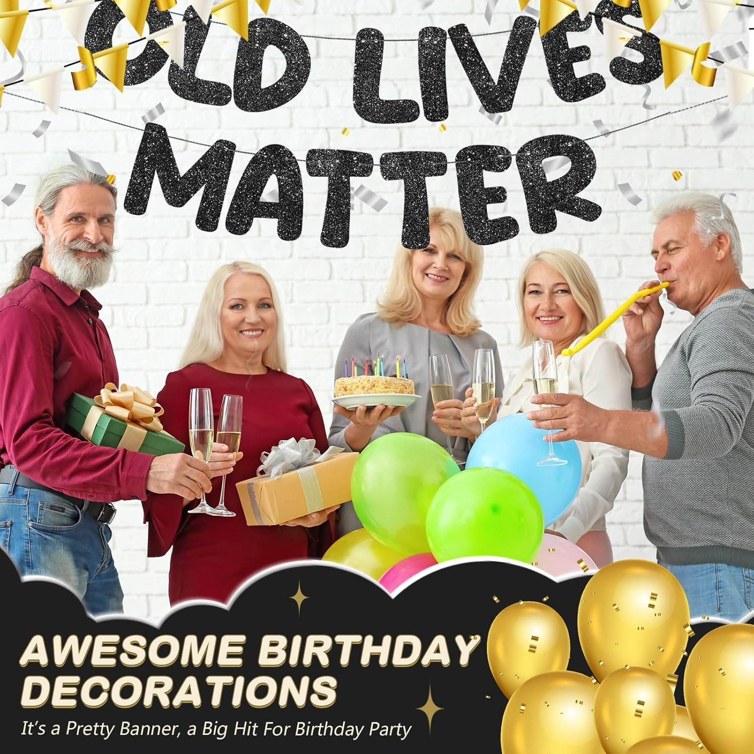 FOR YOU Fulmoon Pre Strung Banner 6.56 Ft Funny Birthday Retirement Party Decorations 80Th 70Th 60Th 50Th Retirement Party Garland Bunting Decorations for Men Women(Glitter Black) FEATURES Easy and Quick Assembly: our funny banner comes pre strung and ready to hang, taking away all the hassle of setup; Just grab it out of the box, unfold it and hang it up; The convenience and time saving features make it an ideal choice for a quick and spontaneous celebration Enhance Your Party Ambiance: these funny birthday decors contribute in creating a shining party atmosphere; Its humor and class make it an instant conversation starter and get your guest's mood elevated in no time Appropriately Sized for Maximum Visibility: being 6.56 ft in length with each letter measuring 6.3 inches in height, our funny birthday banner ensures high visibility at your party; This appropriate size ensures that every guest captures the funny message and atmosphere of the party as they walk in Surprise Your Loved Ones: aged or not, everyone loves good humor; This funny banner for room serves as a creative gift option, guaranteed to fetch attention, and surprise your dad, grandpa or loved ones on their special day, making them feel cherished and young at heart Versatile Decor for Various Occasions: our funny retirement decorations are not just limited to birthdays, it serves as a versatile decoration choice for anniversaries, retirement parties and similar celebrations where the theme revolves around aging humorously and gracefully Product Description Item model number UAN-Fulmoon-2881 Color Glitter Black Brand Fulmoon Material Cardstock Country of Origin China Number of Sets 1 Item Weight 2.89 ounces Shape Triangular Manufacturer recommended age 12 years and up Recommended Uses For Product Party Occasion Birthday, Retirement Special Feature Lightweight Product Dimensions 78.7"L x 6.3"W Product Care Instructions Hang it Manufacturer Fulmoon 6.3 "w x 78.7 "w. Weight: 2.89 oz PAYMENT We accept all payments via Ebay using Credit Cards , PAYPAL , Apple Pay and many others SHIPPING We are always working hard to ensure your package arrives as soon as possible. Please understand that some factors like weather, high postal traffic, and the performance of shipping companies are outside of our control. DELIVERY & RETURN POLICY We offer a 30-Day Return Policy on items in which you are not completely satisfied with. You have the option of a full-refund or an exchange of the item. No returns are available on items shipped outside of the USA.