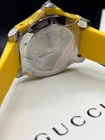 Free shipping from Miami, Florida! Delivery time 1-4 business days Product Details Case Case Thickness 11.5 mm Case Material Stainless Steel Case Shape Round Case Back Solid Band Band Material Rubber Band Type Strap Band Color Yellow Band Width 20 mm Clasp Fold Over Deployment Dial Dial Color Black Type Analog Crystal Scratch Resistant Sapphire Hands Luminous Silver-tone Dial Markers Dot Second Markers Minute Markers around the outer rim Luminiscence Hands and Markers Bezel Uni-directional Rotating Bezel Color Silver-tone Bezel Material Stainless Steel with a Black Top Ring Crown Screw Down Information Brand Gucci Collection Name Dive Gender Mens Model YA136310 Watch Label Swiss Made Movement Quartz Features Water Resistance 200 meters / 660 feet Calendar Date display at the 6 o'clock position Functions Date, Hour, Minute, Second Watch Features Analog, Rubber, Stainless Steel