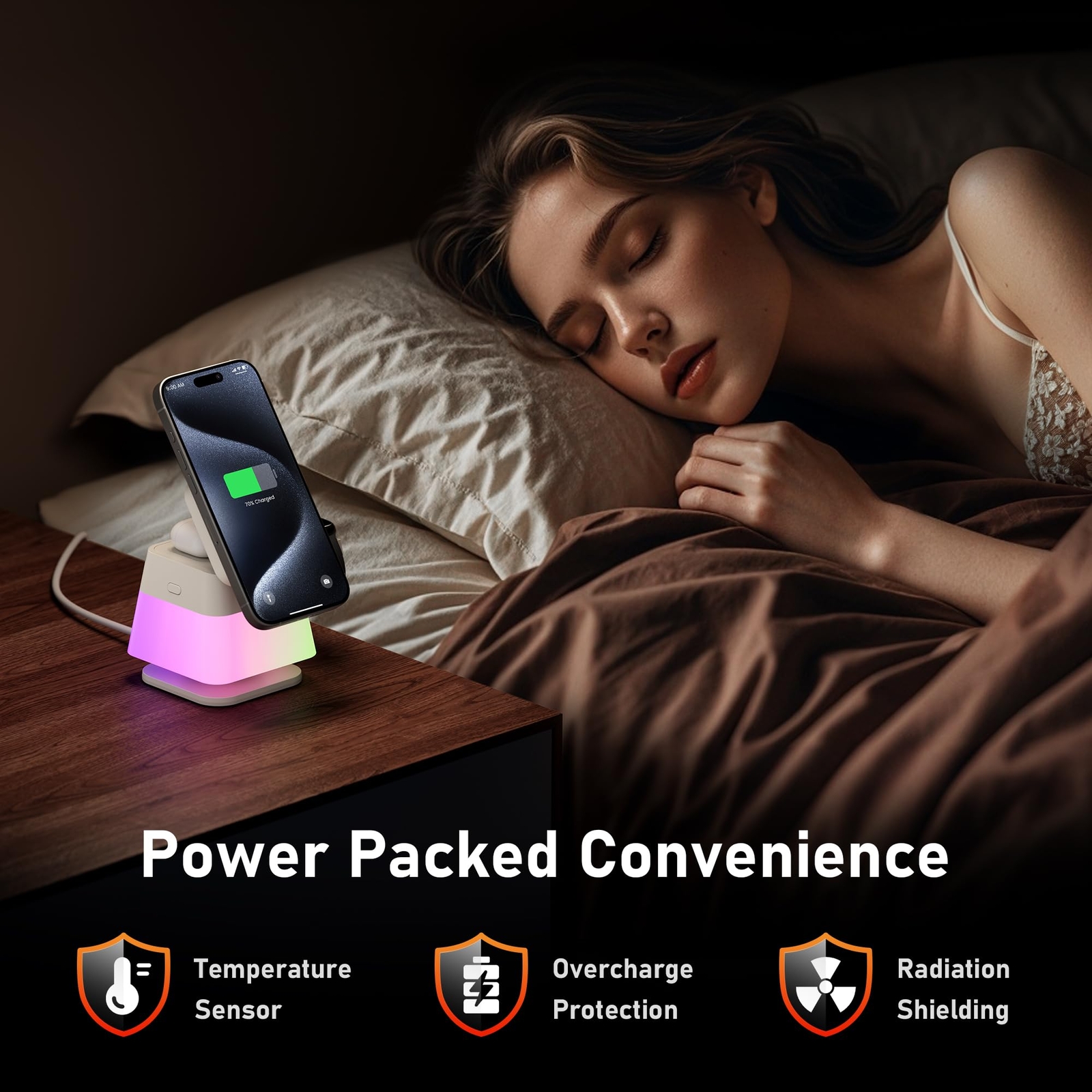 Integrated Smart Apple Ecosystem: As many smart devices have become integral parts of our lives, simplifying the process of providing power to them has become increasingly important. The GUSGU 3 in 1 WIRELESS charging station was designed to efficiently charge multiple devices in a variety of scenarios. Use the equipped charger and cable to provide a significant energy boost to your smart devices, revitalizing them for optimal performance. 3-in-1 Foldable Charging Station: The charger stand features two built-in coils, providing a wider charging area that eliminates the need for precise device placement. You can charge your device in both portrait and landscape modes, while enjoying a comfortable viewing angle for watching videos. Specifically designed for iPhone including iPhone 12 and above models, Apple Watch Ultra 8, 7, 6, 5, 4, 3, 2, and AirPods with wireless charging capabilities. RGB Lighting: With three color modes, this light offers a cozy warm night light and a stylish cool ambiance, perfect for bedtime or as an atmosphere lamp on your computer desk. The charging dock features a smooth 360-degree rotation thanks to its ball bearing design. The phone charging panel can be adjusted along with the stand to a comfortable angle. It serves as both a wireless charging station and a comforting night light that accompanies you during sleep, as well as an ambiance lamp to set the mood while gaming. Safe and Fast Charging: Our wireless charger is equipped with a QC3.0 fast charging adapter and charging cable, supporting a maximum power of 30W. It allows for simultaneous fast charging of up to three devices. The wireless charging feature employs a fill-and-stop technology that temporarily pauses charging when the device is fully charged. It also incorporates real-time temperature monitoring to ensure both efficient and safe charging. What You’ll Get: The package includes a wireless charger, Free 30W adapter, one charging cable. If you have any problems during use, please feel free to contact us.