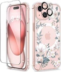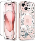 GVIEWIN Designed for iPhone 15 Plus Case 6.7"| Compatible with MagSafe| [Screen Protector + Camera Protector] [MIL-Grade Protection] Magnetic Floral Clear Shockproof Women Cover (Magnolia/White)