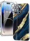 GVIEWIN for iPhone 15 Pro Case with Screen Protector+Camera Lens Protector| [Military Grade Drop Protection] Slim Marble Design Soft TPU Protective Phone Cover for 15 Pro 6.1" (Golden River/Blue)