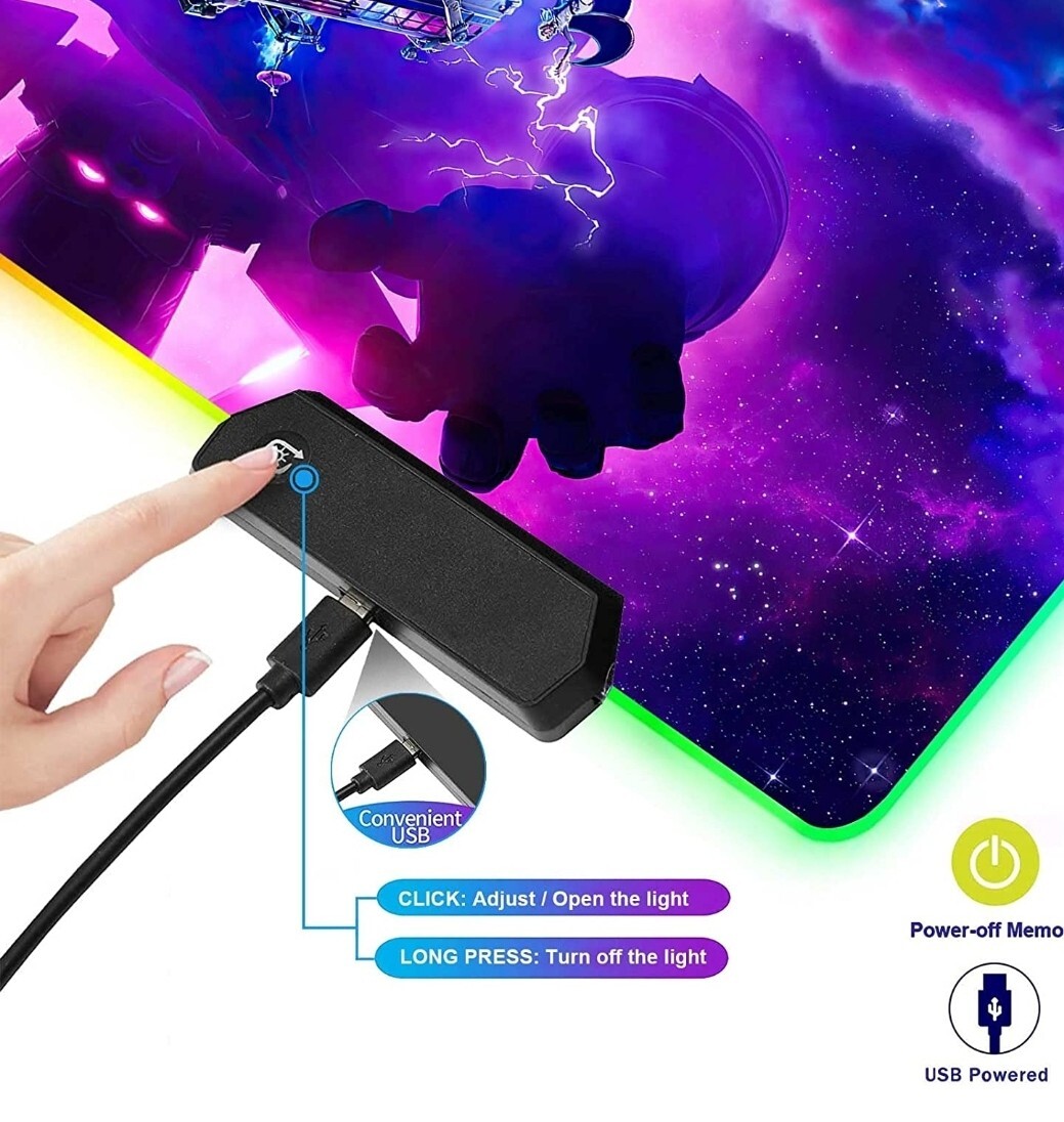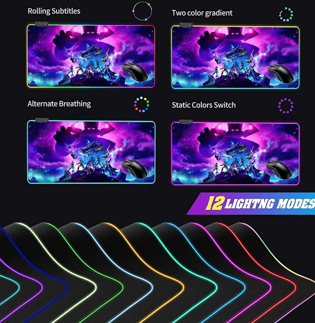 RGB Large Gaming Mouse Pad Galactus Skin . ✅【AWESOME DESIGN FOR YOU】Print Vivid Color Scenes And Pictures On The Mouse pad Through Advanced Technology,Give You a Wonderful Feeling For Your Office, Home Work Or Gaming. For Loyal Fans Of This Theme, This is a Perfect Holiday Gifts. ✅【12 LIGHTING MODES】 This RGB Gaming Mousepad Is Powered By A Usb Cable And The Edge Is Designed With Super Glowing Fiber. You Can Choose Customizable Lighting Provides A Distinctive Appearance And Choose From 12 Lighting Modes : Green,Blue,Purple,Red,Light Blue,Yellow, White,Magenta,Orange,Magic Flash,Magic Slow,Rainbow Breathing. 💻【OFFICE AND GAMING】 The Mouse Mat Measure Size is 31.5x15.7x0.16 Inches / 800x400x4 mm.This Extra Large Desk Pad Is Very Suitable For Office, Gaming, Learning, Desktops, Laptop, Personal Computers, Consoles, Mechanical Keyboard/RGB Illuminated Keyboard , Mini Keyboards And Mice. ✅【COMFORTABLE AND DURABLE ] This Large Gaming Desk Pad is Made Of Durable Environmentally Friendly Material, Features Smooth Textured Cloth Surface, Non-Slip Rubber Base And Durable Stitched Anti-Fray Edges Design. Comfortable For Typing, Home Work, Game Or Using The Mice. ✅【EASY TO USE】 Plug And Play, No Driver Required. Choose Your Favorite Color Mode By Simply Pressing One Button.The Mouse Pad With Memory Function Will Re-Open In The Lighting Mode You Used Before, No Need To Re-Select.