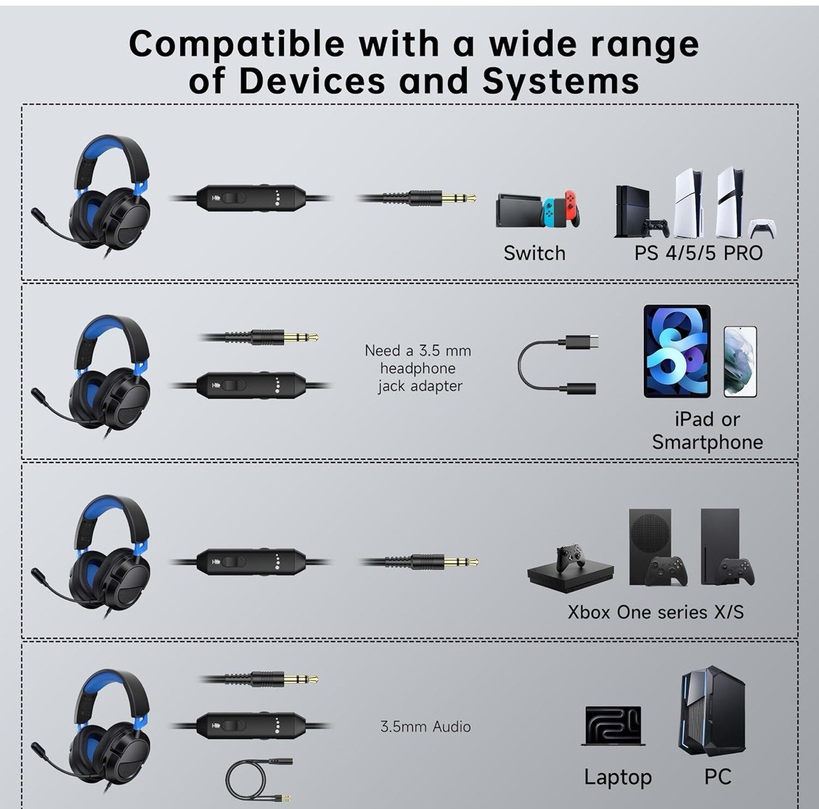 For PS5 Xbox One Nintendo Switch PC Stereo 3.5mm Wired Gaming Headset Headphone