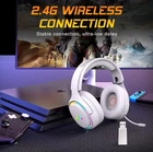 【2.4GHz / Bluetooth Wireless gaming headset for ps5 ps4 Connection】 -- OCG wireless gaming headphones equipped with a 2.4G transmitter+ Bluetooth, which could be perfectly compatible with PC, PS4, PS5, Laptop and Mac. Smart phones.2.4GHz wireless connection via USB dongle with a range of up to 15 meters. 【Upgraded Driver Units】- Clear sound operating strong brass, splendid ambient noise isolation and high precision updated magnetic neodymium driver, acoustic positioning precision enhance the sensitivity of the speaker unit, bringing you vivid sound field, sound clarity, shock feeling sound. 【Adjustable Ear Cups & RGB Lighting Effects 】-- With the adjustable soft memory earmuffs, the headset can be adjusted to fit different head shapes, provides greater flexibility, and also could be adjusted to be more portable to lay aside, occupies less space. While the ring-shaped RGB led lights, which would be better highlight your gaming atmosphere and offer you an awesome eye-catching appearance. with its special lighting effects. 【Retractable Microphone】 -- Flexible microphone can retractable in all the way around that you can get it at a prefect distance from your mouth, transferring the fantastic-quality voice while you are gaming or chatting.with retractable design, prevent from losing and easy to adjust the angle of the mic and retract the headset when not needed,more freely and conveniently. 【Immersive Surround Sound & Long Battery Life】 -- Clear sound operating strong bass, splendid ambient noise isolation and high precision 50mm magnetic neodymium driver, which delivers you particularly clear sound with full dynamic range and rich bass, catch your enemies first before they found you. Gaming-grade 2.4GHz wireless connection via USB dongle with a range of up to 15 meters that can be enjoyed uninterrupted for up to 17 hours.