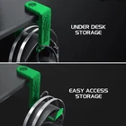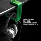 ENHANCE Gaming Headset Hanger Keep your desk looking clean and protect your PC gaming headset from scratches with the ENHANCE PC gaming headphone holder. The headset holder clamps onto your desk easily and holds firmly to prevent accidental movement or falling. Adjustable 360 Degree Rotating Arm The headset mount has a fully adjustable and rotating arm to store your headphones underneath your desk or swing it forward to easily place your headphones onto the arm for quick storage. The clamp opens up to accommodate desks up to 40mm thick. Feel free to also store other accessories such as a watch or hat on the mount as well. Cable Management The ENHANCE Headset Holder also features a built-in cable holder to keep your headset's cable organized and prevent it from dragging on the floor or getting caught between your chair's legs. Headphone Storage & Organization The ENHANCE Headphone Hook combines the simplicity of a traditional headset hook with a few extra quality of life features. The 360 degree rotating arm allows you to store your headphones underneath your desk then quickly swing forward for easy access. Under desk storage combined with a cable loop keeps your headset and cable out of sight until you need it. Free up some desk space, hang up your headset, and organize your space with ENHANCE. 360 Degree Rotating Headset Hanger If you have a headset either at work, at home, or in the studio, you'll know that your headset takes up quite a bit of space. With the ENHANCE Headset Hanger, you can save some desktop real estate while simultaneously protecting your headphones from damage and keeping any cables organized and out of sight. Durable Clamp Design Soft Pad Protects Desk from Damage Cable Organizer Loop 360 Degree Rotating Arm Store Underneath Desk Easily Removable Choose from 6 Colors Select from 6 different colors to match your existing desk aesthetic or get multiple colors to use at work, home, or the studio. Red Blue White Black Pink Green Fits Desks between 10mm - 40mm The headset hanger easily opens up to clamp onto desks between 10mm and 40mm. For the best fit and support, your desk should have 2.5 inches of area above and below the table for the silicone pads to rest upon. Easily clamps onto tables of all materials and types. 360 Degree Rotating Hook Designed with a 360 rotating hook, our headset hanger allows you to keep your headset underneath your desk and out of the way OR swing around to the front for easy access to your audio. Organize & Manage Headset Cables Run your headset's cable through the built in cable loop to prevent the cable from dragging on the floor and ensure your wires are neat and organized. The loop fits most headset cables including braided and reinforced cables.