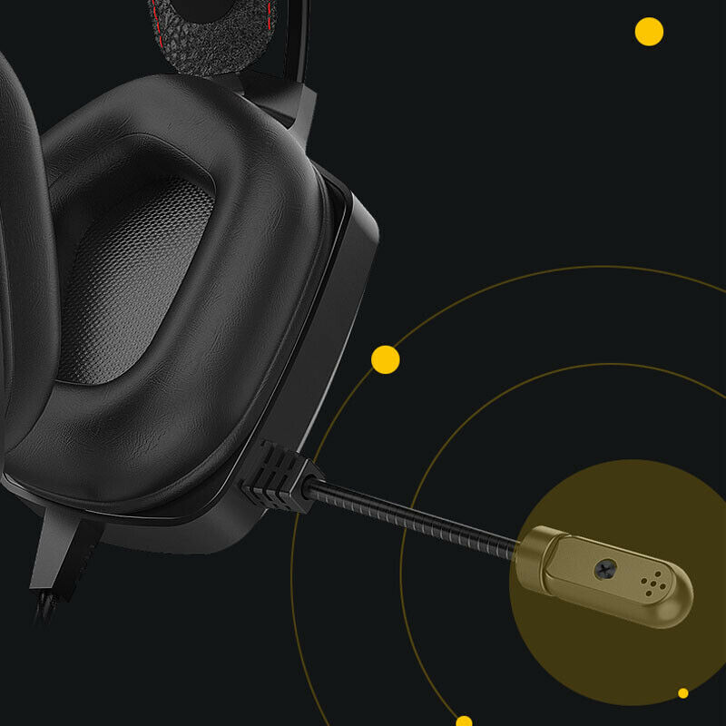 Features: 1. Single side USB interface, drive-free design, plug directly to use. 2. Built-in sound card, USB 7.1, excellent sound quality, bass surge, realistic game experience. 3. Handle ear shell with reticulated PVC LED red effect light, highlighting the technology sense. 4. Ergonomic ear-covering desigh, soft leather earmuffs, comfortable to wear. 5. Hose gooseneck mic rod, retractable, adjustable. Angle bending, all pointing to the sound. 6. Head beam expansion adjustment. 7. Suitable for Windows 7, 8, 10, RT & Mac OSX and other systems. PS4 laptops and desktops also works with. Specification: Type: Ear-Cup (Over the Ear) Mic diameter: Ø 6.0x2.7 mm Microphone Type: On-Cable Number of Earpieces: Double C able Length: 7.5 ft Color: Black Sensitivity: -38±3 db Max Input Power: 100mW Directivity: Omnidirectional Impandance: 16Ω Frequency Response: 20~20000 Hz Working Current: 100 mA Plug Type: USB Package Included: 1 x Gaming Headphone 1 x User Manual