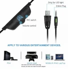 Gaming Headset With MIC Stereo Surround & Noise Cancelling For PS4 Xbox Mac/PC. Features & details 【Versatile Compatibility】Gaming Headsets Works great with gaming devices such as: PS4, PS4 Pro/Slim, PC, PSP. And also compatible with Mac, IOS/Android device, Laptop, PC, iPad or Mobile phone that have 3.5mm jack etc 【Immersive Sound Quality】 Splendid ambient noise isolation and high precision 50mm magnetic neodymium driver give you an experience of immersive 360-degree stereo sound, and acoustic positioning precision of the gaming headset pc enhances the sensitivity of the speaker unit, bringing you vivid sound field, sound clarity, shock feeling sound. Perfect for various games like Halo 5 Guardians, Metal Gear Solid, Call of Duty, Star Wars Battlefront, Overwatch. 【Noise-Cancelling Microphone】360°adjustable high sensitive microphone with omnidirectional noise reduction tech, gaming headset with microphone reduces distracting background noise, to collect your voice clearly. Equipped with super strong cords and joints, our products feature long-lasting durability. 【Great Humanized Design】 Designed for superior comfortable and good air permeability protein over-ear pads, Retractable head beam, flexible headband, our lightweight gaming headset accord with human body engineering specifications can reduce hearing impairment and heat sweat. Glaring LED lights designed on the earcups to highlight game atmosphere. 【Effortlessly Volume Control】 Mute button and volume control housed on high-grade durable braided wire are designed conveniently for quick and convenient adjustment. The pc gaming headset is equipped with super strong cords and joints, our products feature long-lasting durability. The USB connection ONLY uses for lighting up glaring moving LED lights.
