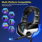 Gaming Headset for PS4 PS5 PC Headphones Stereo 3.5mm Audio Jack with Microphone 7.1 Surround Sound Gaming Headset features 50mm neodymium magnet drivers to give you a vivid and clear soundstage and deep bass. Our professional gaming headset with mic not only enhances your gaming performance, it pinpoints audio in any gaming environment and takes you into immersive video game scenarios. Works on on computer, PC, Laptop, iPad, PlayStation 4 (PS4), PSP, Mobile Phone, Switch and other devices with 3.5mm jack. Simple and easy to use it. 3 years warranty and 7*24H professional customer service to solve your problems. The gaming headset is filled with breathable and durable soft memory foam pads for excellent cushioning and heat dissipation. Adjust lightweight and retractable aluminum headband as needed for a comfortable gaming experience. Dazzling LED lights on the earcups accentuate the gaming ambience. The gaming headset with microphone reduce noise effectively. Bringing you a perfect gaming experience. The adjustable microphone can be rotated to the correct position at any time. Perfect for a variety of games like Halo 5 Guardians, Metal Gear Solid, Call of Duty, Star Wars Battlefront, Overwatch, World of Warcraft Legion and more. Easily mute or adjust volume via the control wheel and mic switch on the cable. High tensile strength, anti-entanglement braided USB cable prevents the ps4 headset with mic cable from chaos, and help easily control the volume or one-key microphone mute. Won't interrupt your gaming experience.