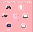 Description Compatible Systems and Devices. Our Headphones Support PS5, PS4 Gaming,New Xbox One, PC and Aslo Compatible with Nintendo Switch, Laptop, Tablet, Computer, PSP, Smartphones. When Connecting to a Game Controller. 1.Please make sure the audio Output setting in your system is “headset”. 2.Please plug 3.5 mm pin into the controller directly which has a 3.5 mm audio port. When Connecting to a PC. 1.The Y Splitter Adapter ( Included )Audio Cable is needed when using the headset on computer. Y Splitter Adapter (1 is for the Microphone and 1 is for Audio.) 2.The Switch of both Headset Microphone and Computer Microphone should be turned on. 3.Please double-click the Speaker icon which is in your computer taskbar to enter the Control Panel for setting the Voice . When Connecting to a Xbox one. 1.New Xbox One can be connected to a controller with 3.5 mm audio port directly. 2.An extra Microsoft Adapter (Not Included) is needed when connected to the Old Version of Xbox One.When adjusting the Volume Button. Make sure the Mute Key is turned off when adjusting the volume.About the sound when talking. 1. Opening the Switch of the Microphone and then adjusting the volume. 2. Pay attention to the Volume Setting in your Gaming system.Specifications: Headset interface: 3.5mm(4pin) Wired Cable length: Approx. 2.1m±0.15 Color: Pink Package size: 180*195*985mm Package weight: 350g Package: 1*Gaming Headset 1*Uer Manual 1*3.5mm Headphone Splitter Adapter Features & details ♪【Multi-Platform Compatible Headsets】Our Pink Headphones are Compatible with Nintendo Switch,PS5,PS4,Xbox One,Xbox One S / X , Laptop , PSP , Tablet , PC , Computer , Phones and Any Other Devices with 3.5mm Port.This Pink Gaming Headset is Great Gaming Accessories for Kids,Adults and Girls Pink Gaming Setup ♪【Stereo Sound Effect & Noise Isolation Headphones for Kids】Not Just A Pair of Gaming Headphones, Our Kids Headphones with Microphones Has Superior Surround Sound Performance with Passive Noise Cancelling Technology which Makes it Perfect for Gaming, Working,Online Studying,Video Chat, Listening to Music, Watching Film or Sleeping ♪【Adjustable Earmuffs & Adjustable Over-Ear with Soft Gaming Mic】Humanized Kids Headphones with Microphone Design Can be Suitable for Any Shape of Head Type and Feature at Any Age. 15°Up and Down Adjustable Earmuff and Good air Permeability Protein can Reduce Hearing Impairment for Kids and Heat Sweat for Long Gaming Sessions. Soft Gaming Mic Rubber Anti-Static Design of This PC Gaming Headsets and 50mm High-Quality Speaker can Clearly Transmit Your HD Voice to Partners ♪【Simple Operation & Ultralight Material Kids Headphones for School】These Kid Headphones Plug In are Good Headphones for Kids for School or for PS5 Games.Only 225g Super Lightweight Kid Headphones Design will Reduce the Head and Face Pressure Caused by Long-hour Wearing and Gaming.This Headphones for Kids is The Pime Choice for School Supplies for Kids