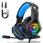 Gaming Headset for Xbox One PS4 PS5 PC Switch, Noise Canceling Headphones with Microphone, 3.5mm Audio Jack, Auto-Adjust Headband, 50mm Drivers, light weight wired headphones- blue black *** open box for inspection *** *** never used *** *** original box and packaging *** *** box in great condition ***