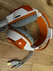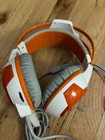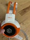 Enhance your gaming experience with this high-quality gaming headset from Aula. The headset is designed with an adjustable headband and ear-cups for maximum comfort during long gaming sessions. It comes in a stylish white color with orange accents that add a touch of flair to your gaming setup. The headset is equipped with both USB and 3.5mm jack connectivity options, making it easy to connect to your computer or other gaming devices. With its superior sound quality and immersive design, this headset is perfect for gamers who want to take their gaming experience to the next level. *Never used.