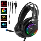 eForCity Immerse yourself in a world of gaming with this multi-platform gaming headset. Compatible with PS5, PS4, Nintendo Switch, Xbox Series X/S, Xbox One, PC, laptop, tablet, cell phone, TV, and other devices with a 3.5mm audio jack, this headset offers an immersive gaming experience across platforms. It features a USB connector for RGB breathing light, while an additional adapter is needed for older version Xbox controllers. With a 40mm magnetic driver, this over-ear gaming headphones capture all sounds, from atmospheric details to stealthy footsteps, providing a competitive advantage. Accurate sound positioning enhances realism, optimizing moves and reflexes during attacks. This wired headphones with microphone deliver 3D stereo surround sound with crisp highs and deep bass, perfect for various games. Crystal clear chat is ensured with the built-in high-sensitivity microphone and effective noise cancellation. The flexible mic allows for convenient adjustment during in-game and online chats. The lightweight design with soft memory protein earmuffs and stretchable metal headband ensures comfort during long gaming sessions. The in-line volume adjustment scroll control adds convenience, while the 6.9ft / 82.8in braided nylon cable offers flexibility and durability. The package includes the 3.5mm wired RGB gaming headset with a microphone, PC Extension Cable, and User Manual. Equipped with RGB breathing lights, this universal headphones with mic creates a captivating gaming atmosphere, making it the perfect gift for gamers. Gaming Headset with Mic for PS5 PS4 xBox Series X/S Switch PC, Wired 3.5mm RGB Multi-Platform Compatibility: This gaming headset is compatible with PS5, PS4, Nintendo Switch, Xbox Series X/S, Xbox One, PC, laptop, tablet, cell phone, TV, and other devices with 3.5mm audio jack connection. Connect effortlessly to multiple devices and enjoy an immersive gaming experience across platforms. It also features a USB connector for lighting up RGB breathing light. Please note that an extra adapter (Not Included) is needed for old version Xbox controllers Superior Sound Quality: This over-ear gaming headphones with a mic are constructed with 40mm magnetic driver, capturing all sounds from the atmosphere to the stealthiest footsteps, giving a competitive advantage in gaming. Accurate sound positioning enhances realism, optimizing moves and reflexes during attacks, aiding in winning the game. This wired headphones with microphone deliver 3D stereo surround sound, with crisp highs and deep, hard-hitting bass. Perfect for various games Crystal Clear Chat: This wired headphones has a built-in high-sensitivity microphone with effective noise cancellation to ensure clear communication. It automatically recognizes the human voice and filters out ambient noise, providing you with the best discussion of strategy with other players. The flexible mic is designed for convenient adjustment of the microphone angle during in-game and online chat Lightweight & Comfortable Design: This RGB gaming headset with a mic features soft memory protein earmuffs on both sides, which are gentle enough for long hours of gaming. The lightweight and stretchable metal headband provides balanced pressure on the head and superb comfort for extended periods of wearing. With an in-line volume adjustment scroll control, this universal 3.5mm headset offers convenience. The 6.9 feet / 82.8 inches braided nylon cable ensures flexibility and durability What's Included: Black 3.5mm wired RGB gaming headset with a microphone, 1x splitter cable specially for PC use, and User Manual. This gamer headphones is equipped with RGB breathing light that illuminate your over-ear headphones in rainbow colors, creating a captivating gaming atmosphere. Additionally, the stylish RGB lighting adds a cool touch to video recording and live broadcasting scenarios. Level up your gaming experience with this must-have accessory, making it the perfect gift for gamers