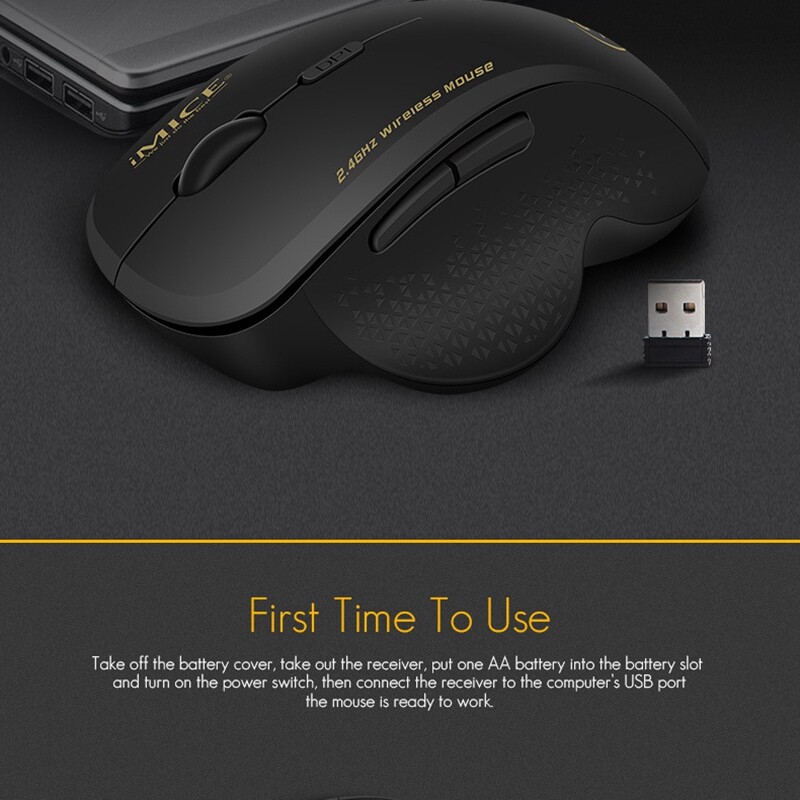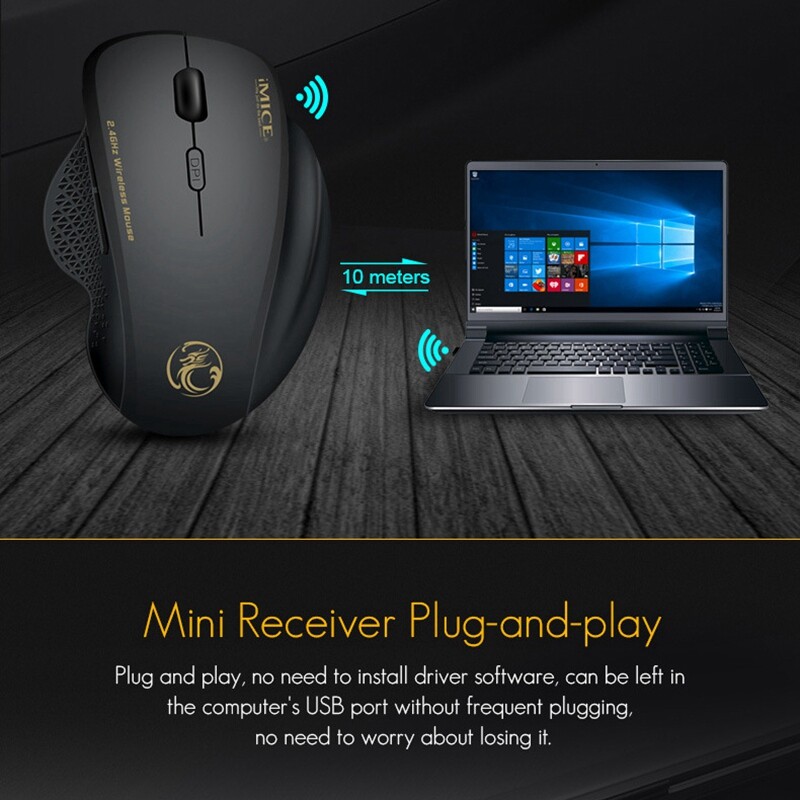 Gaming Mouse Ergonomic Mouse 6 Keys LED 1600 DPI Computer Mouse Gamer6147 1.Excellent ergonomic design, the operator can more comfortable fit the product, have a more natural grip, so as to reduce the discomfort caused by long-term use and bring comfortable experience 2.Intelligent connectivity, just plug the wireless receiver into your computer USB port, and no extra driver required. 3.Adopt 2.4GHz wireless technology, provides a powerful, reliable connection, increase working distance of up to 10m. 4.Adopts the top class of power saving chip, 5 times power saving than ordinary wireless mouse, standby time is over 12 months. 5.Adjustable DPI Function: 800/1200/1600, Maximum Acceleration 20G Key number: 6 keys Transmission: 2.4Ghz Wireless interface: USB nano-receiver Working dISTANCE: 10M System support: xp/Vista/Win7/8/10 color: Black Material:ABS Package Contents: 1 * Receiver 1 * Mouse