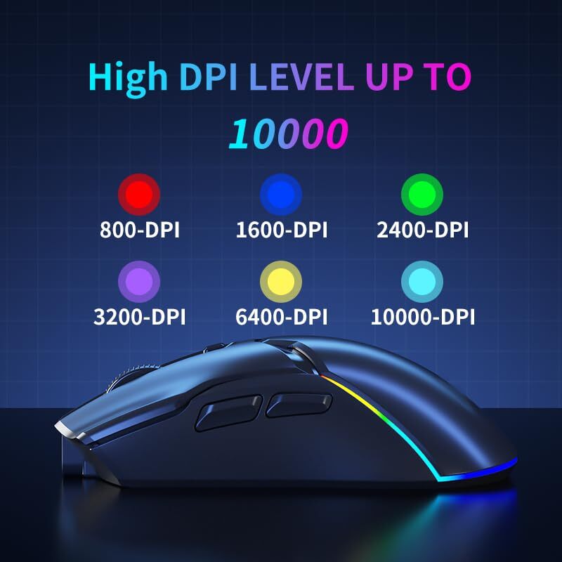 Unbelievable Savings! Come to our stores, where your satisfaction is guaranteed. Gaming Mouse Wireless, Optical 10K DPI Sensor, Tri-Mode Bluetooth Mouse Gaming with USB Receiver, RGB LED Backlit, 6 Macro Buttons, Rechargeable Computer Mouse for PC, Mac, Laptop Product Overview Using wireless Bluetooth technology, built-in 600mAH lithium battery, -c interface, a mobile phone, charging is convenient and more scientific, the charging time is about 2-3 hours, the mouse no longer needs to buy batteries, there are 6 ergonomic buttons, the comfortable contoured shape follows the natural curves of your hand, allowing you to stay productive longer. Switch life:10 million left and right button presses Dimensions:124mm x 65mm x 38mm Weight:81(±5) grams System Requirements: Compatible with PCs, laptops and other devices with USB interface/Bluetooth connection; Windows 7 or higher operating system How to connect Bluetooth mode? Turn the switch at the bottom of the mouse to "BT"; Press and hold [left button + scroll wheel + right button] at the same time until the light at the mouse logo flashes continuously, indicating that the mouse is in the code matching state; Open the Bluetooth device to search and select the Bluetooth name BT5.0-Mouse, click Connect, and start Bluetooth pairing. After success, the indicator light goes out, and the connection is successful and you can use it. Key Highlights Latest 3 Modes Connect: The laptop mouse can freely switch between Bluetooth, 2.4G, and wired modes. Wireless/Bluetooth technology brings a stable and reliable connection experience, with a response speed of up to 500Hz, fast and error-free data transmission, and an effective range of up to 10 meters. At the same time, the ergonomic design of the mouse also brings you a more comfortable feel, allowing you to maintain a happy mood even during long-term use Customized Cursor Speed: The wireless RGB mouse supports flexible adjustment from 800-10,000 DPI and is equipped with a high-performance optical sensor, providing you with excellent sensitivity and precise tracking. Whether you are working, browsing, or gaming, you can easily handle it, making your operations smoother and more comfortable, reducing muscle fatigue, and improving work efficiency Extended Battery Life: This rechargeable mouse has a built-in 600mAh large-capacity lithium battery. There is no need to replace the battery frequently. It can be easily charged with the included USB cable and can be fully charged in 2-3 hours. The mouse automatically enters sleep mode after being idle for 10 minutes, saving power and making long-term use worry-free, press any key to wake the mouse Colorful LED Ambient Light: The Bluetooth gaming mouse is equipped with 7 RGB color breathing light modes, which can be switched with one click to bring a pleasant visual experience to your work and entertainment. Especially when playing games in dark light environments, LED lights can add more fun. If you need to turn off the lights, just press one button Widely Compatible, Plug and Play: Our gaming mouse is easy to operate and supports PCs, laptops, etc. with USB ports and Bluetooth connections. It is also compatible with Windows (version 8 and above), macOS, Android, and other operating systems, allowing you to use it easily on different devices to meet diversified needs Note: If you need to use mouse macros, please contact the seller for support. Payment Options ✓ Secure payments via eBay's system. ✓ We accept PayPal and all major credit cards. ✓ Immediate payment required upon purchase. ✓ Contact us if you have any payment issues. Delivery Information ✓ Orders are shipped to the address provided at checkout. Please ensure it is correct. ✓ We process orders within 1 business day (excluding weekends and holidays). ✓ Delivery usually takes 3-5 business days. ✓ We use trusted carriers like UPS, FedEx, and USPS. ✓ Shipping is only available within the contiguous United States. No shipping to Alaska, Hawaii, Puerto Rico, or PO Boxes. ✓ Contact us if you experience any shipping delays. Return Guidelines ✓ We offer a 30-day return policy. ✓ If you are not satisfied with your purchase, you can return it within 30 days for a full refund. ✓ Contact us to get the return address before sending back any items. ✓ Items must be returned in their original condition and packaging.