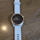 This Garmin Approach S42 is a stylish and functional golf GPS smartwatch! The white and rose gold design looks elegant, while the accurate GPS helps track courses effortlessly. Lightweight and comfortable with its silicone band, it’s perfect for golfers. Includes charging cable and manual—great value for a pre-owned piece. No returns, but totally worth it for the price!