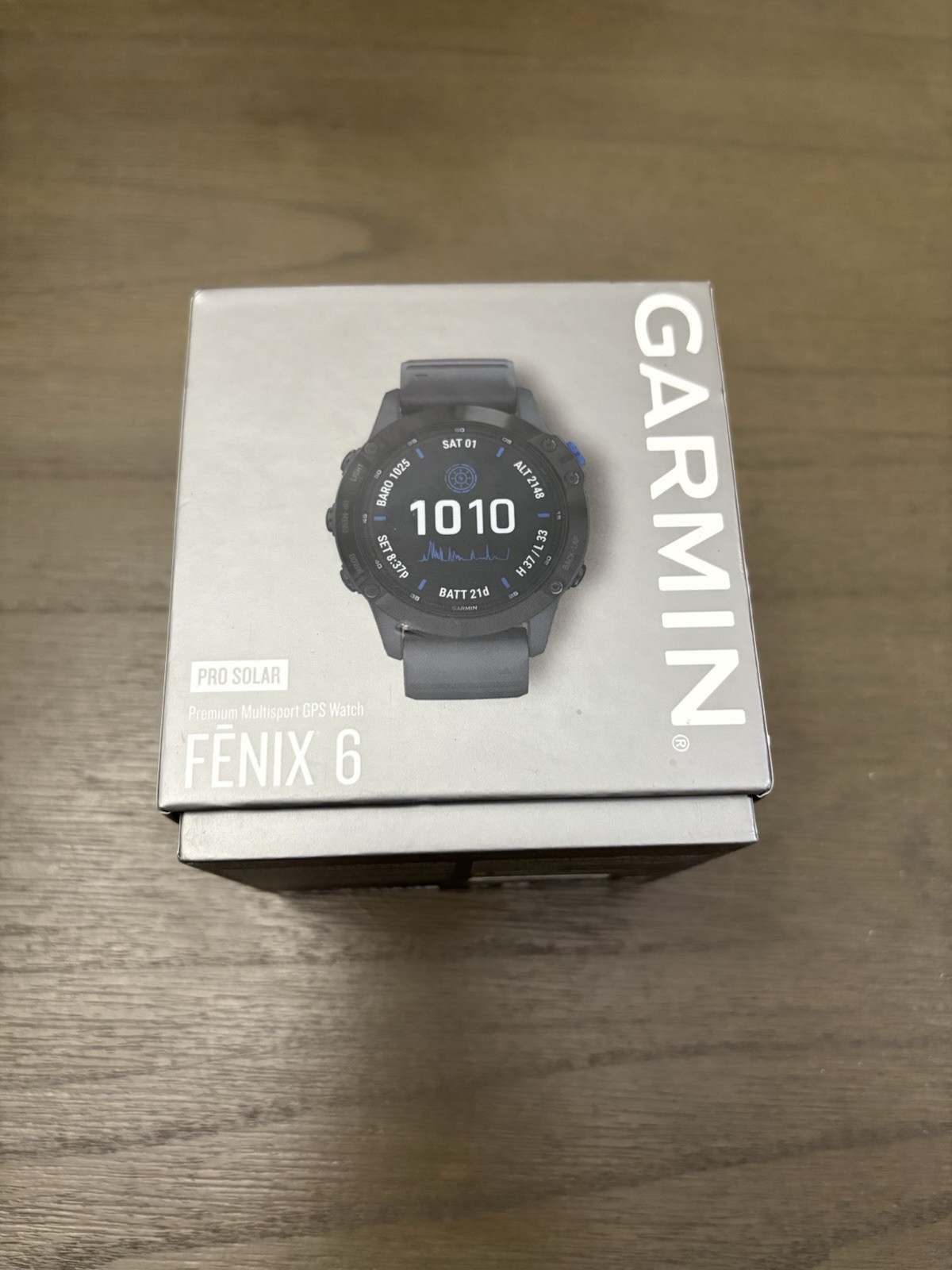 Excellent condition used Garmin Fenix 6 pro solar. Includes charger and original box.
