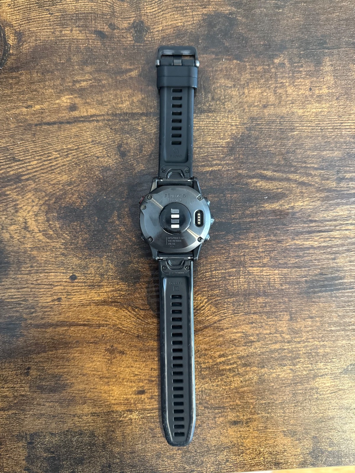 The Garmin Fenix 6X Sapphire GPS Watch in Black is a high-quality smartwatch designed for both indoor and outdoor use. It features a durable construction with a mix of polymer clay, stainless steel, and steel materials. The watch offers a range of measurement options including heart rate, speed, cadence, time, distance, and calories. With a battery life of more than 7 days, this watch is equipped with features such as GPS, stopwatch, compass, and a variety of monitoring tools for different sports activities like gym training, swimming, and running. It is suitable for unisex adults and provides data in multiple languages. Includes watch and charging cord
