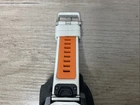 This looks to be a brand new unit. It comes with the white with orange accent band. See pictures, I tried to take close-up pictures to show any defects with the unit. It will come in a box but not the original box the box says Fenix 7 Pro And this is the 7 standard does come with original Garmin wire. Overall, a very nice unit.