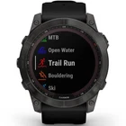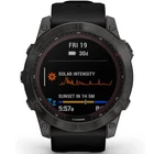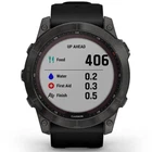 GRFENIX7XCGB Menu Buydig Home Shipping Policy Return Policy About Buydig Add to Favorite Sellers Photo & Video Television Audio GPS Computers Printers Luggage Home & Garden Garmin Fenix 7X Sapphire Solar Smartwatch - Carbon Gray Titanium with Black Band Catalog #: GRFENIX7XCGB MFG Part #: 010-02541-10 Condition: Brand new, USA Warranty Solar-powered battery boost between charges: Solar charging yields up to 37 days of battery life in smartwatch mode Navigate with GPS, preloaded TopoActive maps Stream your music from your wrist -- No phone needed! PRODUCT INFORMATION GO LONGER. GET STRONGER. SEVEN DAYS A WEEK. Meet any athletic or outdoor challenge with the rugged fenix 7X Sapphire Solar multisport GPS watch. Its scratch-resistant Power Sapphire™ solar charging lens uses the sun’s energy to extend battery life — powering advanced training features, sports apps, health and wellness monitoring sensors and more. Product Highlights: Get a battery boost from the sunlight, so you can go longer between charges. How is your body holding up? Wrist-based heart rate and Pulse Ox will let you know. Navigate with preloaded TopoActive maps and use built-in Wi-Fi® for easy updates. Keep great tunes coming with music on your wrist — and no phone to weigh you down. When it gets dark, the built-in LED flashlight helps keep you going. Do more. Charge less. Solar charging yields up to 37 days of battery life in smartwatch mode. Product Features: PERFORMANCE BY DESIGN Updated, ultratough athletic design features a large 1.4” solar charged display and 51 mm case. The watch is tested to U.S. military standards for thermal, shock and water resistance. TOUCHSCREEN AND BUTTONS Trusted button controls that work in any environment are matched with a responsive new touchscreen interface for quick access to selections and functions. PREMIUM MATERIALS Fit the watch’s look to your lifestyle with a stylish DLC or titanium bezel. BUILT-IN SPORTS APPS Use preloaded activity profiles for trail running, swimming, running, biking, hiking, rowing, skiing, golfing, surfing, indoor climbing and more. BACKCOUNTRY SKI Stay informed when you’re in the snow. This preloaded profile helps distinguish between skiing and climbing. It shows metrics specific to either ascent or descent. XC SKI DYNAMICS When paired with the HRM-Pro™ chest strap (sold separately), the ski power metric helps measure the actual exercise load of your cross-country workouts. SURF-READY FEATURES Get ready to catch some waves. This fenix watch works with the Surfline Sessions™ feature, which creates a video of every wave you ride in front of a Surfline® camera4. So you can watch them later and see how you did with your Surfline Sessions subscription. MTB DYNAMICS Track the details of every ride with mountain biking metrics plus specialized Grit™ and Flow™ measurements that rate trail difficulty and how smoothly you descend, giving you a score to beat next time. HIIT WORKOUTS This activity profile tracks your high-intensity interval training workouts, including AMRAP, EMOM, Tabata and custom. Set the number of rounds, work/rest intervals and more. DAILY WORKOUT SUGGESTIONS For training guidance that takes you and your fitness level into account, get daily run and ride recommendations based on your current training load and training status. VISUAL RACE PREDICTOR Based on your running history and overall fitness level, this feature provides an estimate of what your pace could be for the distance you want to run. Trend data shows how your training is having an impact over time. PACEPRO™ TECHNOLOGY A first-of-its-kind PacePro feature helps keep you on pace with grade-adjusted guidance as you run a course. CLIMBPRO FEATURE Use the ClimbPro ascent planner on downloaded courses to see real-time information on your current and upcoming climbs, including gradient, distance and elevation gain — as well as descents and flats. PERFORMANCE METRICS View advanced training metrics that include running dynamics, heat- and altitude-adjusted VO2 max, trail running adjustment, recovery advisor and more. REAL-TIME STAMINA Use this data to track and manage your exertion — and help avoid overexerting at the start of your run or bike. RECOVERY TIME ADVISOR After each workout, recovery time lets you know when you’ll be ready for another hard workout. It even accounts for training intensity and factors such as stress, daily activity and sleep. BUILT-IN FLASHLIGHT To help guide your way in low-light conditions, a built-in multi-LED flashlight provides quick access to a bright, steady beam of illumination. MULTI-BAND GNSS SUPPORT Access multiple global navigation satellite systems (GPS, GLONASS, GALILEO). With the Sapphire Solar editions, get superior accuracy using technology previously only available to the military. Access multiple frequencies sent by navigation satellites for improved position accuracy in areas where GNSS signals are reflected, weak or typically don't penetrate. ABC SENSORS Navigate your next trail with ABC sensors, including an altimeter for elevation data, barometer to monitor weather and 3-axis electronic compass. GOLF COURSE MAPS Access full-color CourseView maps for more than 42,000 golf courses around the world, and get button targeting and the PlaysLike Distance feature. SKIVIEW™ MAPS Take on the slopes with preloaded SkiView maps, and view run names and difficulty ratings for more than 2,000 ski resorts worldwide. MULTICONTINENT TOPO MAPS Preloaded TopoActive maps from around the world keep your explorations on track. Use built-in Wi-Fi® connectivity to easily load and update maps and software without using a computer. UP AHEAD Get at-a-glance awareness for selected POI checkpoints ahead. View performance metrics, split times and distance/elevation — plus a summary of key trail points coming up. POWER MANAGER View how various settings and sensors impact your watch’s battery life, so you can make battery-extending changes on 