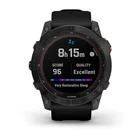 Garmin Fēnix 7X, Solar Edition Slate grey with black band (Garmin Certified Refurbished) Garmin fēnix 7X Solar: Built for Every Challenge, Powered by the Sun The Garmin fēnix 7X Solar multisport GPS watch is designed for athletes and outdoor enthusiasts who demand a rugged, feature-packed watch that performs under the toughest conditions. With solar charging to extend battery life, advanced health and fitness tracking, built-in sports apps, and specialized features for various sports, the fēnix 7X Solar empowers you to push your limits and keep going longer. Whether you're hiking in the backcountry, biking a mountain trail, running a marathon, or skiing down the slopes, the fēnix 7X Solar is built to keep up and enhance your performance. Key Features of the Garmin fēnix 7X Solar 1. Solar-Powered Battery Life Up to 28 Days in smartwatch mode with an additional 9 days from solar charging. Up to 89 Hours in GPS mode, with an extra 33 hours from solar charging. Power Glass™ Solar Charging Lens : The sun helps keep your watch powered so you can focus on your adventure, not your battery. 2. Performance-Driven Design 1.4-inch Solar Charged Display with a durable 51 mm case designed to withstand harsh conditions. Built to military standards for thermal, shock, and water resistance (MIL-STD 810). The combination of touchscreen and button controls ensures ease of use, whether you’re in the middle of a workout or navigating tough environments. 3. Built-In Sports Apps Preloaded activity profiles for nearly every sport, including: Trail Running, Swimming, Running, Biking, Hiking, Rowing, Skiing, Golfing, Surfing, Indoor Climbing and more. Backcountry Skiing and Snowboarding : Tracks your descents and climbs automatically. XC Ski Dynamics : Paired with the HRM-Pro™ heart rate monitor (sold separately), this feature tracks ski power metrics for cross-country workouts. 4. Specialized Sports Features Surf-Ready Features : Compatible with Surfline Sessions™ to create videos of the waves you ride for later review. MTB Dynamics : Tracks mountain biking metrics with Grit™ and Flow™ measurements to rate trail difficulty and track your performance. HIIT Workouts : Track high-intensity interval training workouts with customizable intervals and rounds. PacePro™ Technology : Helps you stay on pace with real-time guidance based on the course profile. 5. Advanced Performance and Training Metrics Visual Race Predictor : Estimates your pace for upcoming events based on your running history and fitness level. ClimbPro : Displays real-time information about current and upcoming climbs, including gradients, distances, and elevation gains. Real-Time Stamina : Helps manage your energy and avoid overexertion during a workout by tracking your stamina levels. Recovery Time Advisor : Recommends recovery periods based on your previous workout intensity and performance. Training Status : Evaluates your current training load and offers insights on whether you’re training productively, peaking, or overreaching. 6. Health Monitoring Features Wrist-Based Heart Rate : Monitors your heart rate throughout the day, during workouts, and even while swimming. Pulse Ox Sensor : Measures blood oxygen saturation to help with altitude acclimation and sleep monitoring. HRV Status : Tracks heart rate variability to give you deeper insight into your recovery and stress levels. Body Battery™ Energy Monitoring : Tracks your energy levels throughout the day, helping you understand when you’re ready for action or when you need rest. Sleep Coach : Personalized coaching to help improve sleep and recovery based on your body’s needs. 7. Multisport Auto Transition Seamlessly Switch Between Sports : Automatically transition between activities in triathlons, duathlons, swimruns, and brick workouts without stopping to reset the watch. Custom Multisport Profiles : Create personalized profiles for your unique workout or race combinations. 8. Mapping and Navigation Outdoor Maps+ Subscription : Get access to premium mapping content, such as enhanced Topo maps and satellite imagery , directly on your watch. Multi-GNSS Support : Access multiple global satellite systems (GPS, GLONASS, Galileo) to track your location in challenging environments. NextFork™ Map Guide : See the distance and name of upcoming trail intersections at a glance to stay on course. ABC Sensors : Built-in altimeter , barometer , and 3-axis electronic compass help you navigate and track environmental conditions. 9. Safety and Tracking Features Incident Detection : In select outdoor activities, the watch can automatically send your location to your emergency contacts if it detects an incident. Live Location Sharing : Manually or automatically send your real-time location to contacts during select activities when paired with your smartphone. 10. Music and Smart Features Phone-Free Music : Download music or playlists from Spotify , Deezer , or YouTube Music directly to the watch for phone-free listening during your workout (requires subscription). Garmin Pay™ : Make secure contactless payments with your wrist at supported retailers. Smart Notifications : Receive emails, texts, and alerts when paired with your compatible smartphone. 11. Extra Features for Athletes Jet Lag Adviser : Minimize jet lag during long trips with tips on light exposure, sleep schedules, and exercise, all based on your travel details entered in the Garmin Connect app. Hydration Tracking : Log your fluid intake and monitor sweat loss to help maintain hydration levels during workouts. Stock Tracker : Monitor up to 50 stocks with the built-in Stocks app, so you can track your investments on the go. Unlocking Value: Why a Garmin Certified Factory Refurbished GPS Could Be Your Best Investment: Cost Savings: Enjoy significant savings compared to buying a brand-new GPS unit. Garmin Certified Factory Refurbished Quality: Each Garmin Factory Refurbished unit undergoes rigorous testing and recertificati