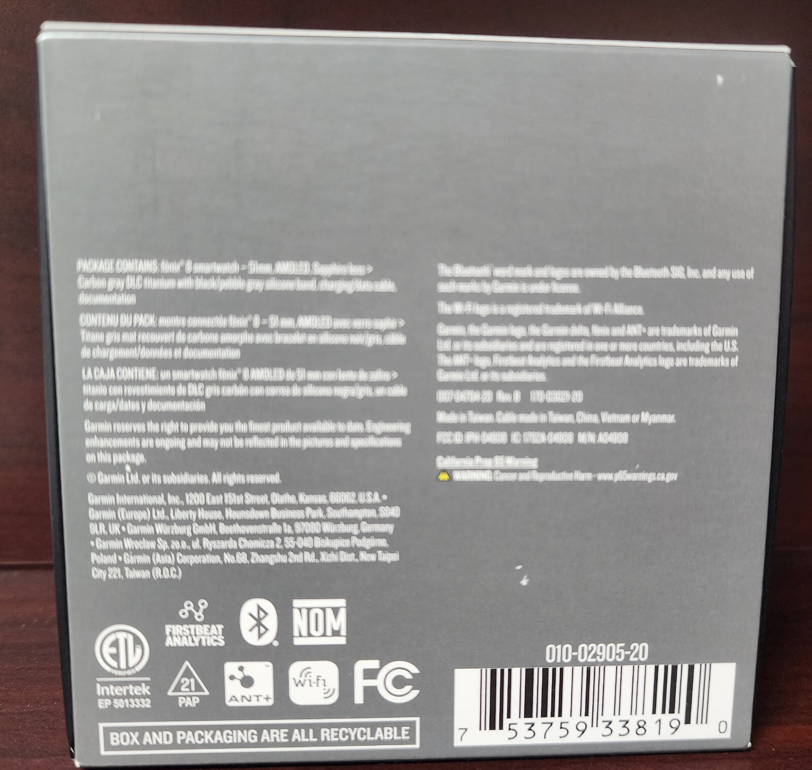Garmin 010-02905-20 Fenix 8 Sapphire Smartwatch Athlete GPS Watch - 51 mm AMOLED BE LIMITLESS For serious athletes and adventurers who want to push beyond their limits, this premium multisport GPS smartwatch is built to perform — with advanced strength training features, dive capability, an internal speaker and mic for voice features, a built-in LED flashlight and more. BRIGHT, CRISP AMOLED DISPLAY UP TO 29 DAYS OF BATTERY LIFE IN SMARTWATCH MODE SPEAKER AND MICROPHONE FOR VOICE MESSAGING 1 AND CONTROL BRIGHT BUILT-IN LED FLASHLIGHT SPORT-SPECIFIC STRENGTH WORKOUTS RUGGED BY DESIGN Built to endure, this premium design is dive-rated and features leakproof buttons, a metal sensor guard cover and bright 1.4” AMOLED display with options for a scratch-resistant lens and titanium bezel. It’s tested to U.S. military standards for thermal, shock and water resistance. BUILT-IN SPEAKER AND MICROPHONE Make and take phone calls from your watch when it’s paired to your smartphone. Plus, control watch functions with off-grid voice commands — or use your smartphone’s voice assistant to respond to text messages and more. BUILT-IN LED FLASHLIGHT A true integrated flashlight with variable light intensities and a red safety light gives you greater awareness in the dark, providing convenient illumination when you need it. Strobe mode can even match your running cadence. ADVANCED STRENGTH TRAINING Elevate your body’s performance with targeted strength training plans and sport-specific workouts for athletes of all types. KNOWLEDGE IS POWER Begin each day with a customizable morning report offering a summary of health and wellness information. Use the training readiness feature, which looks at a variety of health metrics, to maximize your training efficiency and recovery 2 — to help prevent burnout. ENHANCED MAP NAVIGATION A dynamic round-trip routing feature lets you enter how far you want to go — and get suggested routes that will guide you back on time. You can also view terrain contours on TopoActive maps 3 and access preloaded maps for golf courses and ski resorts around the world. PERFORMANCE FEATURES ENDURANCE SCORE Using your VO2 max, training loads and other factors, this feature helps gauge your ability to sustain prolonged effort . VISUAL RACE PREDICTOR Get an estimate of what your pace could be for a 5K, 10K, half-marathon and marathon. PACEPRO ™ TECHNOLOGY Plan race-day strategy with GPS-based pace guidance for a selected course or distance. CLIMBPRO FEATURE See real-time information on your current and upcoming climbs on downloaded courses. GRADE-ADJUSTED PACE Get your equivalent running pace at the same effort on flat ground or when ascending. TRAINING READINESS From the moment you wake up, get a readiness score based on your sleep quality 2 , recovery, training load and more, so you can determine if it’s a good day to go hard — or take it easy. TRAINING STATUS Get insight , and know whether you’re training productively, peaking or strained. PERFORMANCE METRICS Gauge your performance with advanced training metrics such as VO2 max , training load and more. MULTISPORT AUTO TRANSITION This feature detects sport changes between swim, bike and run in multisport activities — so you can focus on the race and let your watch take care of recording splits. HILL SCORE Measure your capability for running uphill , and evaluate your progress over time based on your VO2 max and training history. DAILY SUGGESTED WORKOUTS View your entire week of daily suggested workouts , which adapt after every run or ride. RECOVERY TIME Know how long you need to recover before your next high-effort workout based on your latest training. RACE WIDGET Prepare for your next race with training tips, personalized daily suggested workouts and more. WRIST-BASED RUNNING DYNAMICS View crucial running metrics such as cadence, stride length, ground contact time and more. GARMIN COACH Prepare for your next race, train for a milestone, or simply improve your fitness with Garmin Coach adaptive or prebuilt training plans . ACTIVITIES AND FUNCTIONS TRACK YOUR ACTIVITIES Use preloaded activity profiles to get data and insight from your active pursuits. Even track team sport activities such as soccer, football, racquet sports and more. RECREATIONAL DIVING A 40-meter dive rating and leakproof metal buttons let you reach new depths with support for scuba and apnea dive activities. HIIT WORKOUTS Track your HIIT workouts, including AMRAP, EMOM, Tabata or custom workouts. ANIMATED WORKOUTS Follow animated workouts for cardio, strength, yoga and Pilates on the watch screen. BACKCOUNTRY SKI AND SNOWBOARD Get ascent and descent data along with metrics such as cadence, stride length and grade. XC SKI POWER Measure exercise load when paired with an HRM-Pro ™ Plus chest strap (sold separately). SURF ACTIVITY Record waves surfed, maximum speed reached, distance traveled and more. Use Surfline Sessions ™ technology to capture video of waves you ride in front of a Surfline ® camera. MTB DYNAMICS Track the details of your ride with specialized Grit ® and Flow ™ measurements. FIND YOUR WAY OUTDOOR MAPS+ Subscribe to Outdoor Maps+ for premium mapping content, such as satellite imagery and enhanced topographic maps, downloaded directly to your watch. SATIQ ™ TECHNOLOGY Get superior positioning accuracy with multi-band GPS while optimizing battery life. ABC SENSORS Navigate your next trail with an altimeter, barometer and 3-axis electronic compass. MULTICONTINENT TOPO MAPS TopoActive maps 3 from around the world keep your explorations on track. Download additional maps via Wi-Fi ® connectivity. NEXTFORK ™ MAP GUIDE Navigate with a quick glance, and see the distance to the next intersection and the trail name. UP AHEAD FEATURE Get at-a-glance awareness for selected POI checkpoints ahead — such as aid stations — during a race. COURSES WITH TURN-BY-TURN DIRECTIONS Create or find existing courses in the Garmin Connect ™ 