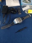 This Garmin Forerunner 205 is a versatile heart rate watch that provides accurate measurements for your time, calories, distance, and heart rate. It comes in its original box with software, charger, band, and screwdriver. The watch is suitable for indoor and outdoor use with its GPS sensors and can run up to 7 days with its batteries. It is made of plastic material, and has a display resolution of 128 x 128 with a display size of 3.3 x 2.0 cm. This heart rate watch is designed for unisex adults who are into running and jogging. You can choose between English and French language, and it is manufactured in Taiwan. The watch measures 5.33 x 6.86 x 1.78 cm in width and weighs 2.7 oz. This heart rate watch is perfect for fitness enthusiasts who want to track their progress. This unit doesn't appear to have much if any use. There are no scrapes nor scratches. See photos for details. Location 115