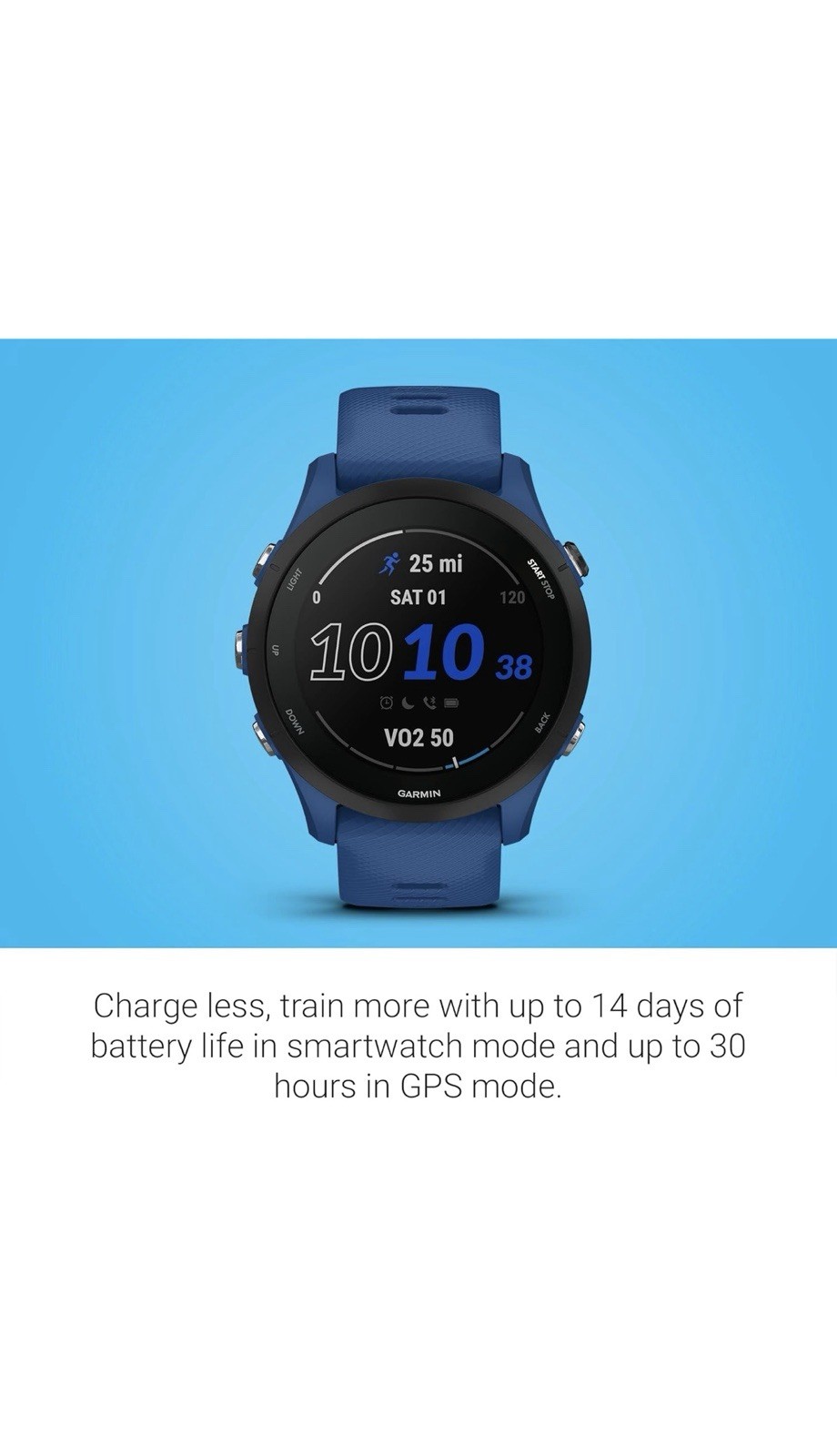 The Garmin Forerunner 255 GPS running smartwatch in Tidal Blue is a high-performance device designed for both indoor and outdoor activities. With a display resolution of 260 x 260, users can easily view their fitness data and track their progress. This smartwatch features advanced sensors such as SpO2, accelerometer, gyroscope, GPS, and compass, making it ideal for activities like gym training, swimming, and running. The heart rate monitor and sleep tracking features ensure users stay on top of their health and fitness goals. With a durable plastic construction and compatibility with both iOS and Android operating systems, this Garmin smartwatch is perfect for unisex adults looking to improve their overall well-being.