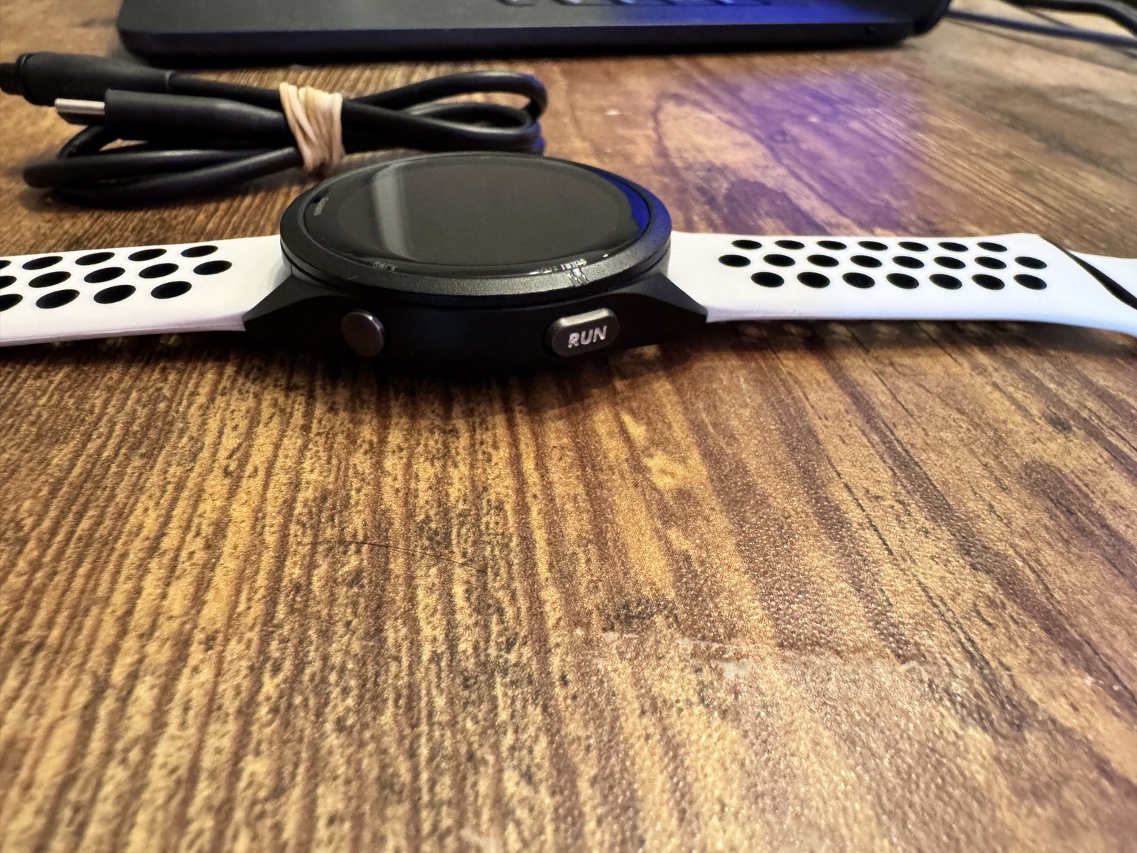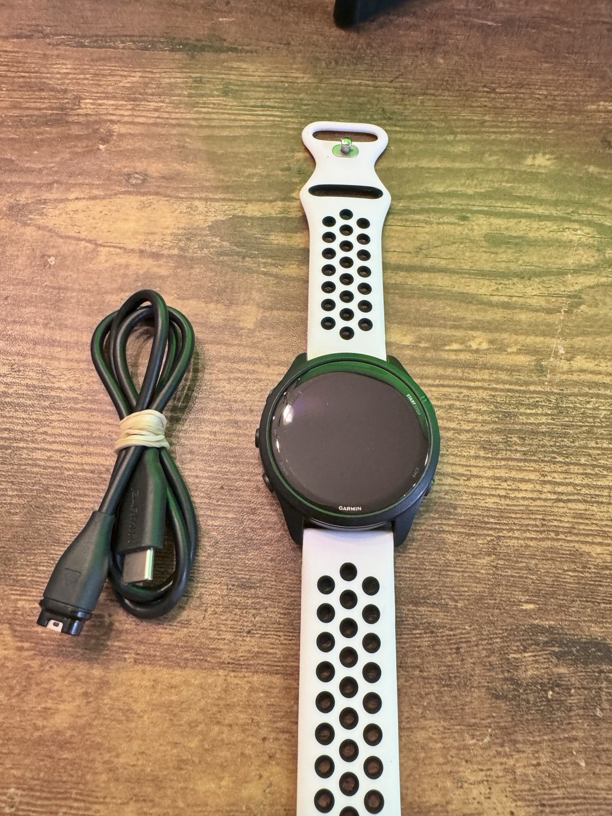 Ordered in Dec of 2024 and wore it daily. Selling because I moved to the new Garmin. Let me know if you want any other pictures. Comes with white strap and power cord.