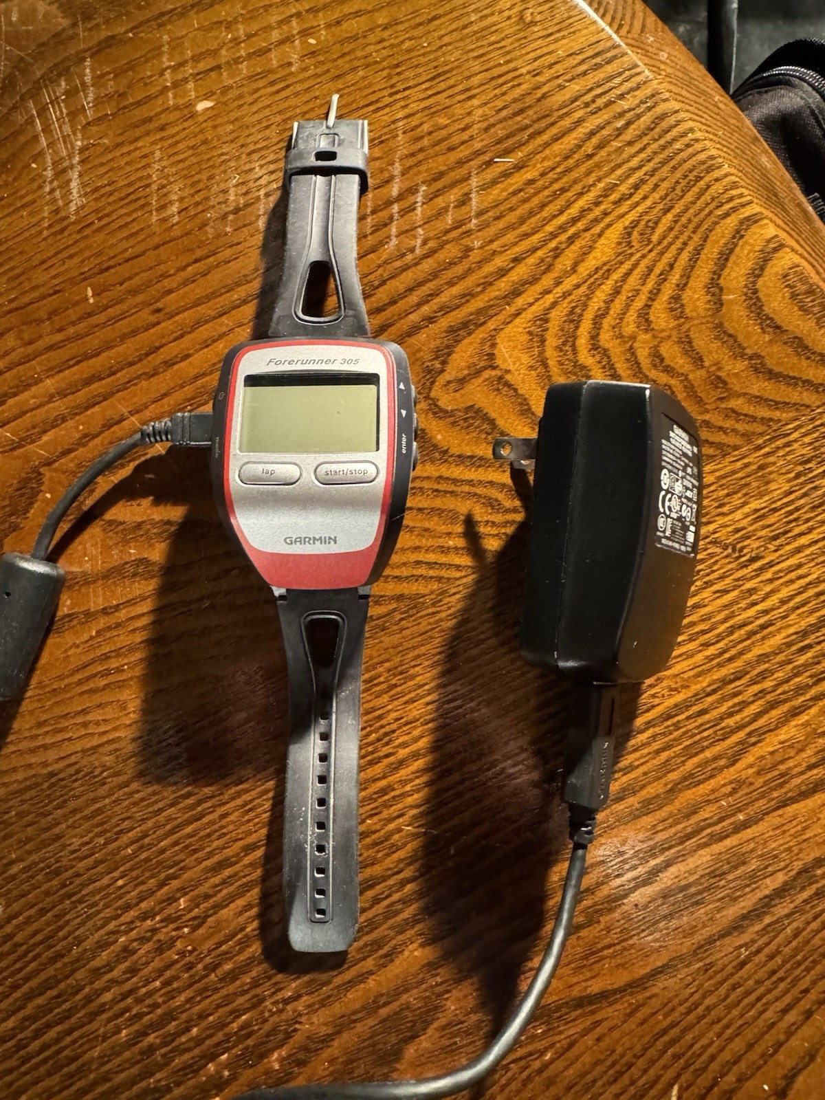 The Garmin Forerunner 305 GPS Enabled Trainer Watch is a versatile fitness device designed for both indoor and outdoor activities. Made with stainless steel and plastic materials, this red watch features GPS technology for accurate tracking of distance, time, and heart rate. It also includes a clock, calorie monitor, and heart rate monitor, making it a comprehensive tool for gym training and running. With its English language interface and unisex design, this Garmin watch is a reliable companion for anyone looking to improve their fitness and performance.