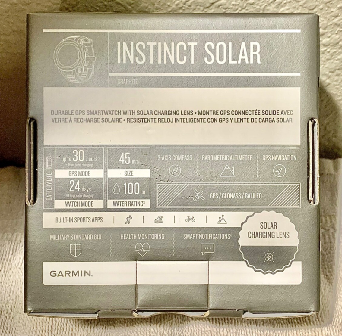 100% Genuine Garmin Watch Condition: Brand New About this item Vastly extended battery life through solar charging.Supported Application:GPS. Connectivity technology:GPS. Wireless comm standard:Bluetooth Rugged GPS Watch is water-rated to 100 meters and constructed to U.S. military standard 810 for thermal, shock and water resistance Built-in 3-axis compass and barometric altimeter plus multiple global navigation satellite systems (GPS, Glonass and Galileo) track in more challenging environments than GPS alone Track your activities for running, biking, swimming, strength and more Help understand your health and wellness better with all-day health monitoring and Pulse Ox (this is not a medical device and is not intended for use in the diagnosis or monitoring of any medical condition) Monitor how your body uses energy by tracking heart rate, stress and sleep estimates with body battery energy monitoring Currently Retails for $229!