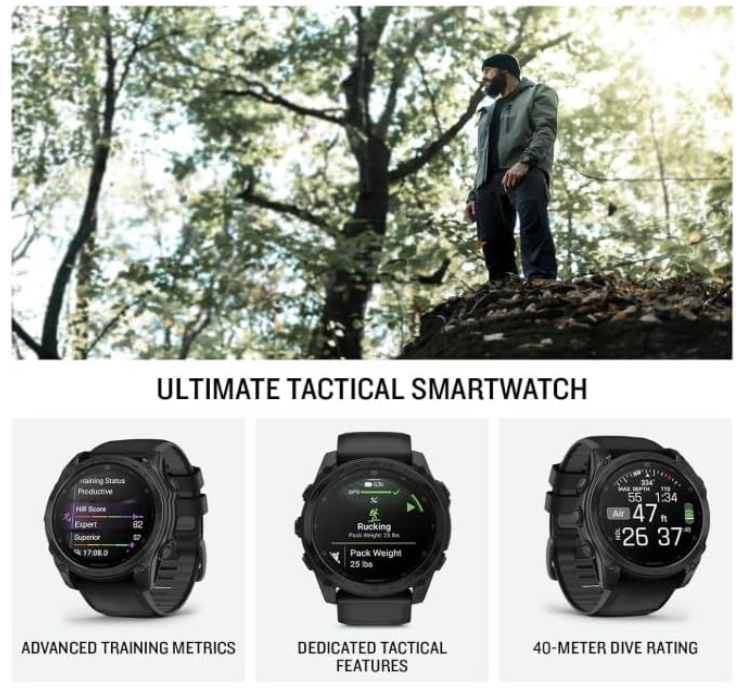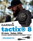About us Contact Us Feedback Listings Shop Garmin Tactix 8 - 51mm, Solar Charged Display, ELITE, Titanium Bezel, Sapphire Lens, Premium Tactical GPS Smartwatch, Includes Applied Ballistics Ultralight Elite Solver, 40 M Dive Rating with Wearable4U Power Bank Bundle (010-03407-10_PowerBankSq) Description Contact Us Buy with Confidence Rise above with tactix 8. It’s the ultimate tactical smartwatch, featuring a solar charged display, titanium bezel, sapphire lens and a 40-meter dive rating. Pair with your smartphone for on-wrist calling with the built-in speaker and mic. Dedicated tactical features include a rucking activity and preloaded Applied Ballistics Elite Solver along with a jumpmaster activity, waypoint projection, stealth mode, kill switch and more. Guide the mission with a built-in LED flashlight. Train like never before with strength training plans, sport-specific workouts and daily suggested strength workouts for runners and cyclists. Navigate the outdoors with superior positioning accuracy, thanks to multi-band GPS with SatIQ technology plus built-in sensors for the 3-axis compass, gyroscope and barometric altimeter. Push harder with up to 48 days of battery life in smartwatch mode (assumes all-day wear with 3 hours per day outside in 50,000 lux conditions). Key Features: Advanced tactical GPS smartwatch features a 1.4” solar charged display, titanium bezel and sapphire lens and built-in LED flashlight for after-dark visibility Dedicated tactical features include a jumpmaster activity, waypoint projection, dual-position GPS format, stealth mode, kill switch, compatibility with night vision goggles, rucking activity and a preloaded Applied Ballistics Elite solver Power up your body’s performance, endurance and resistance to injury with targeted strength training plans, real-time stamina tracking, sport-specific workouts and a full range of built-in sports apps. Download the AB Quantum mobile app on your compatible smartphone to manage profiles and targets or use your smartphone as an additional display Battery performance: up to 48 days in smartwatch mode with solar charging (assumes all-day wear with 3 hours per day outside in 50,000 lux conditions) and up to 149 hours in GPS mode with solar charging (assumes continuous use for entire period in 50,000 lux conditions) Navigate the outdoors with superior positioning accuracy, thanks to multi-band GPS with SatIQ technology plus built-in sensors for the 3-axis compass, gyroscope and barometric altimeter 40-meter dive rating helps you reach new depths with support for scuba and apnea dive activities Includes a fully functional aviation navigation system with worldwide dynamic moving map, GPS navigation, NEXRAD, weather display, airport information and more 24/7 health and wellness monitoring with wrist-based heart rate, advanced sleep monitoring, respiration tracking, Pulse Ox and more (this is not a medical device, and data presented is intended to be a close estimation of metrics tracked; Pulse Ox not available in all countries); the ECG app can record your heart rhythm and check for signs of atrial fibrillation (not available in all regions; for people 22 years or older) Explore new missions with preloaded TopoActive maps with relief shading, and get access to free additional downloadable maps from around the world — plus built-in maps for thousands of golf courses and ski resorts worldwide Garmin Tactix 8 - 51 mm Solar Charged Display ELITE Premium Tactical GPS Smartwatch Specifications: Model: Taxtix 8 - 51 mm Solar Elite Color: Black Display type: Sunlight-visible, transflective memory-in-pixel (MIP) Solar Charging: Yes Touchscreen: Yes Display Size: 1.4” (35.56 mm) diameter Display resolution: 280 x 280 pixels Strap material: silicone Lens Material: Power Sapphire Bezel Material: titanium Case material: fiber-reinforced polymer with titanium rear cover QuickFit watch band compatible: included (26 mm) Touchscreen: Yes Water rating: 10 ATM Dive activity maximum operating depth: 40 meters Battery life (smartwatch mode): Up to 30 days (48 days with solar) Built-in mapping: Yes LED flashlight: Yes Garmin Pay: Yes Multi-band GPS: Yes Leakproof inductive buttons: Yes Built-in speaker/microphone: Yes Memory/History: 32 GB Connectivity: BLUETOOTH, ANT+, Wi-Fi Dimensions: 51 x 51 x 15.4 mm Weight: 95 g (case only: 67 g) IN THE BOX: 1x Garmin Tactix 8 Smartwatch – 51 mm, Solar, Elite with black silicone watch band; Preloaded with Applied Ballistics Ultralight Elite solver; Charging/data cable; Documentation; 1x Wearable4U Power Bank In The Box Tactix 8 - 51 mm Solar Charged Display ELITE Premium Tactical GPS Smartwatch with Wearable4U Power Bank Bundle: Wearable4U Power Bank Keep your devices charged at all times with our Wearable4U Power Bank. Compatible with all popular USB-powered devices including most smartphones, GPS and fitness trackers, smart watches, wireless speakers, bluetooth headphones, and more. Enjoy! Garmin Tactix 8 Series Premium Tactical GPS Smartwatch Please use eBay's internal messaging system to get a hold of us. Please remember to leave positive feedback if you are satisfied with the order. If you are not satisfied please contact us and we will do our best to solve the problem or refund your order. Contact Us FREE SHIPPING . We aim to ship orders placed before 3pm Monday to Friday the same day, orders placed after this time will be posted next working day. Orders placed on weekends and bank holidays will be posted the next working day. All items are sent via USPS, FedEx or UPS post. Postage is combined for multiple purchases. Please request an invoice for reduced postage. First class and priority mail post should arrive in 2 day, but this is not guaranteed. Proof of postage is always obtained. However, an item is only considered "lost" after 15 working days, please contact us if your item does not arrive. If the wrong contact details are provided any losses incurred as a result will be the buyers respo